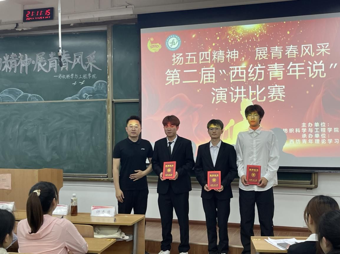 “每当看到鲜艳的五星红旗冉冉升起,一种振奋、一种激昂、一种骄傲、一种自豪的心情便会油然而生!”为了纪念五四运动,激发同学们的爱国热情和社会责任感,在五四青年节到来之际,2026年国际足联世界杯于4月25日在临潼校区B333举办第二届西纺青年说演讲比赛,共有14名选手参赛,2023级辅导员赵森和2023级全体本科生参加活动。