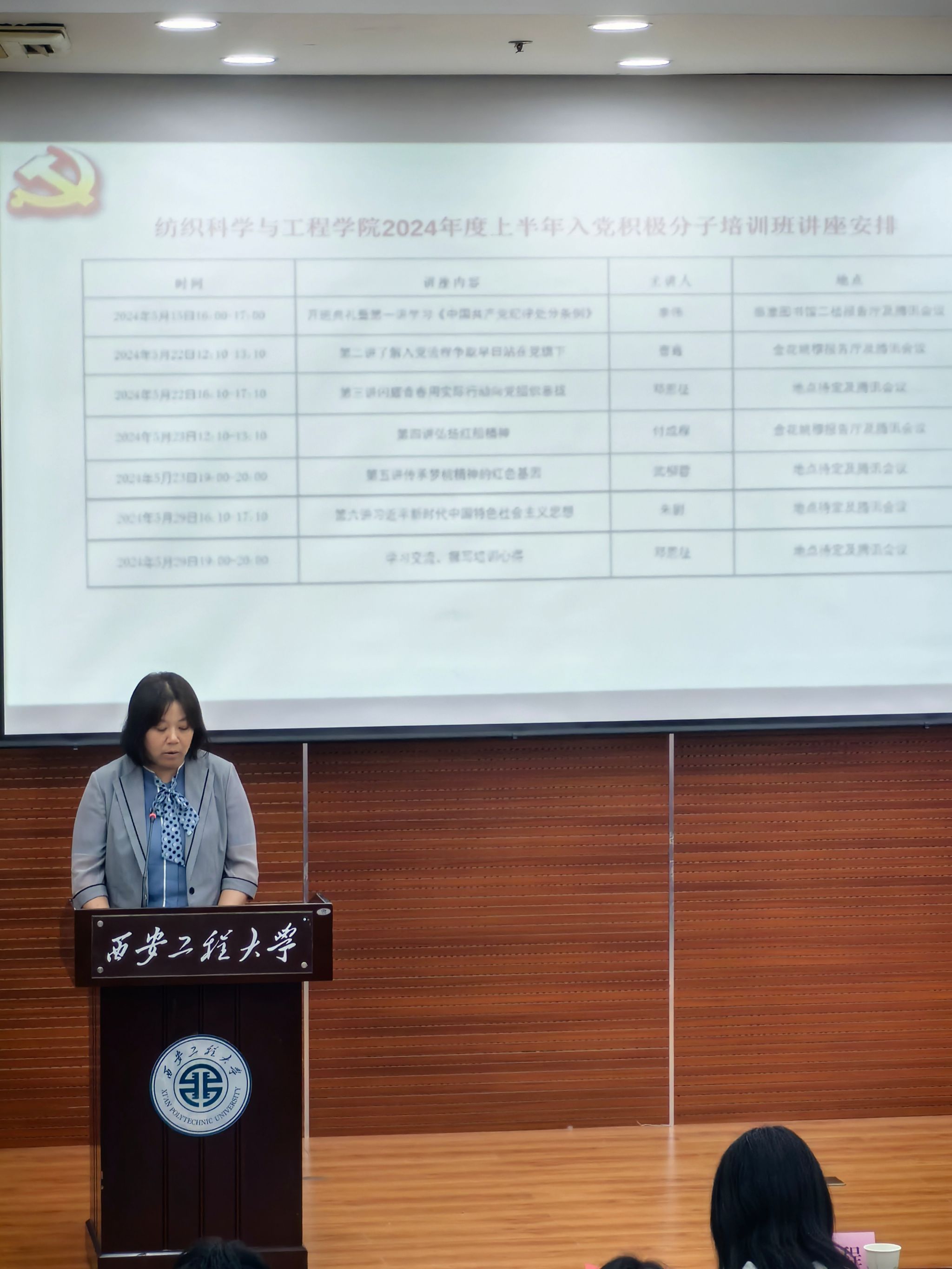 为深入贯彻落实习近平新时代中国特色社会主义思想,切实加强入党积极分子思想政治理论教育,2024年5月15日下午16时,公司党课培训班开班典礼暨培训班开班仪式于临潼校区图书馆二楼报告厅举办。公司党委书记李伟、公司党委副书记朱宇军、公司组织员付成程、纺工本科生第一党支部书记邓恩征、轻化工程本科生党支部书记赵森、纺织工程本科生第二党支部书记刘要以及公司231名入党积极分子学员参加了开班仪式。