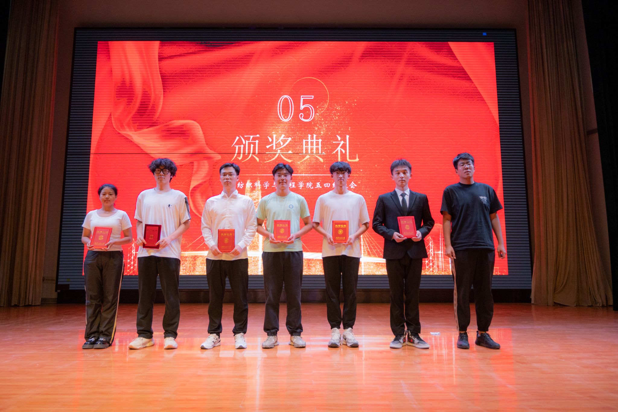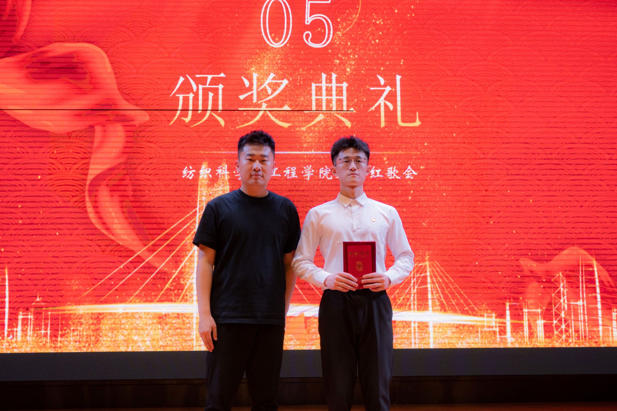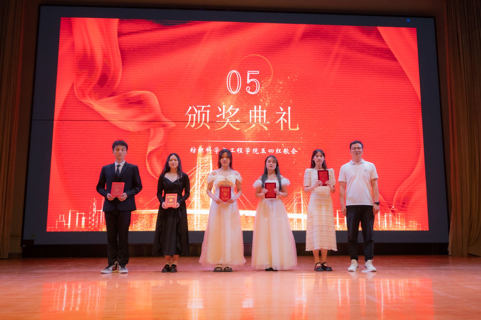 展演活动中,各参赛班级分别歌唱了固定曲目《光荣啊,中国共青团》和《我爱你中国》《少年中国说》《强军战歌》、《歌唱祖国》《社会主义好》等自选曲目,这些脍炙人口的红歌,将比赛推向了一个又一个高潮。尤其是纺织类2304班的一首《没有共产党就没有新中国》引发了全场观众的共鸣。这首歌以其激昂的旋律和动人的歌词,展现了中华民族不屈不挠的奋斗精神。参赛选手们用激情昂扬的嗓音,将这首歌曲演绎得淋漓尽致,赢得了现场观众的阵阵掌声。