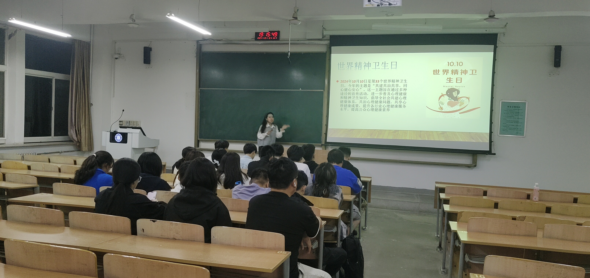 2024年10月10日,在世界精神卫生日之际,2024级3个本科生班级分别举行了心理主题班会,旨在引导员工关注心理健康,提升心理调节能力。此次活动通过电影放映、主题宣讲和情绪管理技巧分享等多样形式,帮助员工更好地理解并维护心理健康。