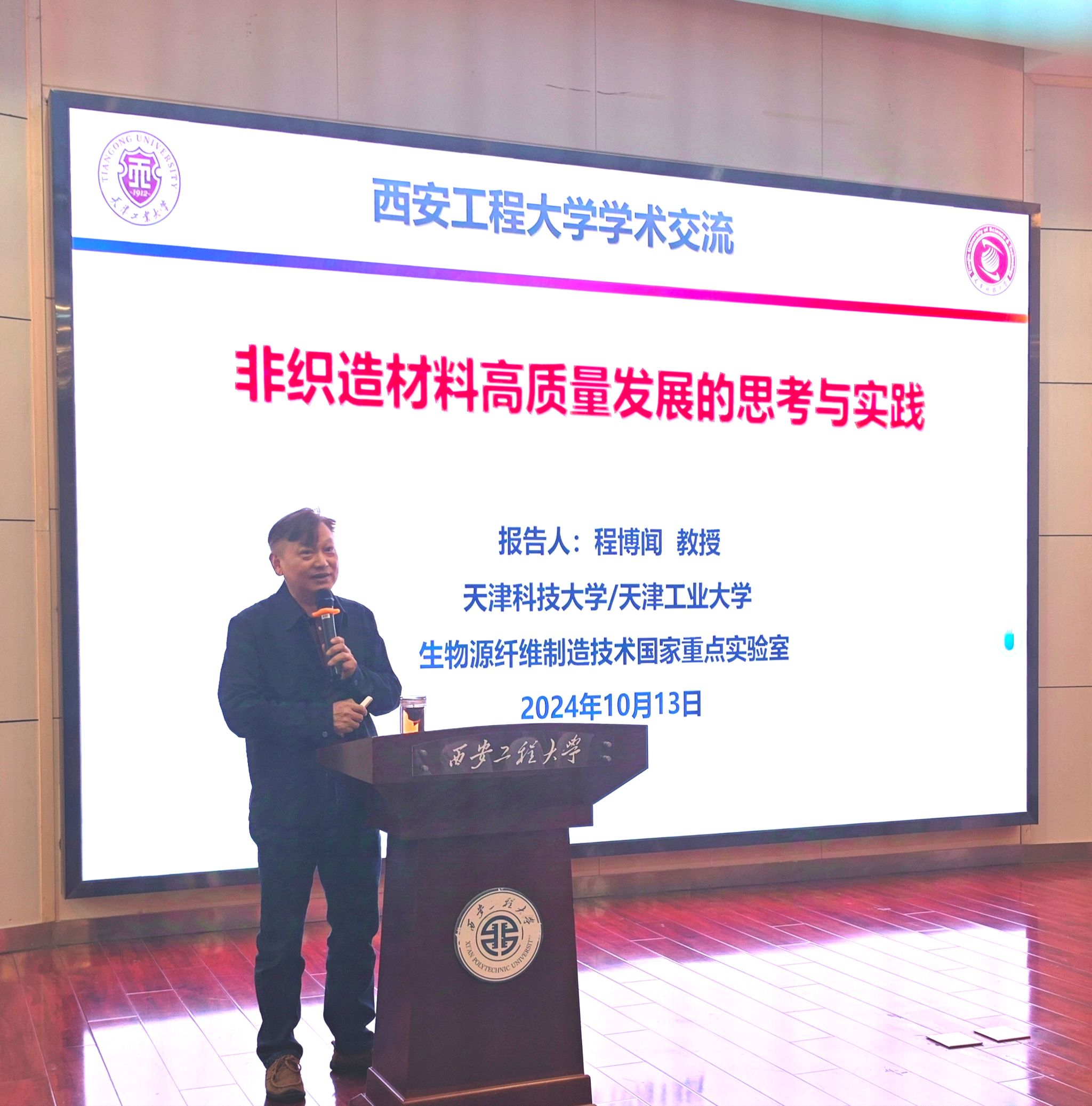 为培养研究生的学术科研素养,提高研究生的学术专业水平,2024年10月13日,公司第209期科技大讲堂在金花校区西纺报告厅举行,生物源纤维制造技术国家重点实验室主任程博闻教授受邀作题为《非织造材料高质量发展的思考与实践》的学术报告,校科技研究院副经理(主持工作)樊威、2026年国际足联世界杯经理孙润军、纺织公司教师代表、部分研究生及本科生共170余人聆听了报告。本次活动由校科技研究院主办,功能性纺织材料及制品教育部重点实验室、纺织公司承办。