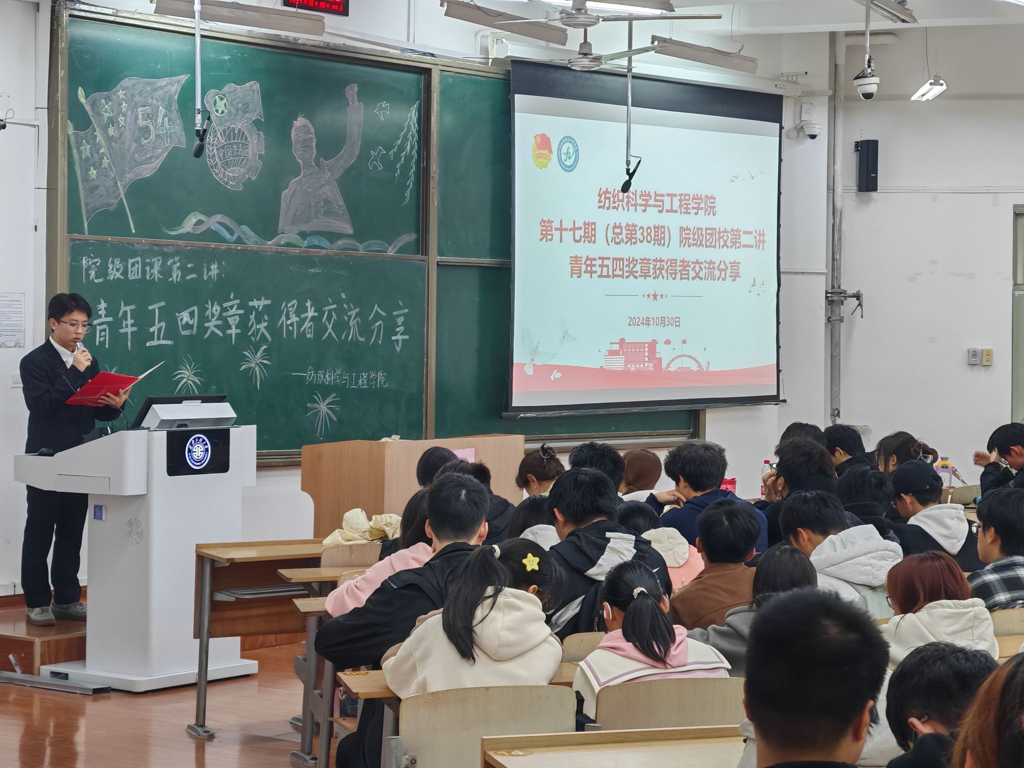 会上,杨忠凯分享了自己对纺织专业知识的热爱与执着追求。他凭借刻苦钻研的精神,不仅成功推免为本校研究生,还荣获董事长奖学金。在校期间他积极参与创新创业竞赛,担任公司老员工科技协会主席团成员,带领团队开展社会实践,荣获校级青年五四奖章。杨忠凯的青春故事,展现了他用知识和汗水书写的璀璨篇章。范大程则以自己丰富的校园文化生活和体育竞技经历,向同学们展示了青春的活力与激情。他在公司员工会担任主席团成员,同时还是公司户外队队长。范大程积极参加各项体育比赛,包括西安马拉松、宝鸡马拉松等十余项赛事,并在校运动会中屡获佳绩。他鼓励同学们在大学期间积极参加各类校园文化活动,把握当下,勇敢追梦。