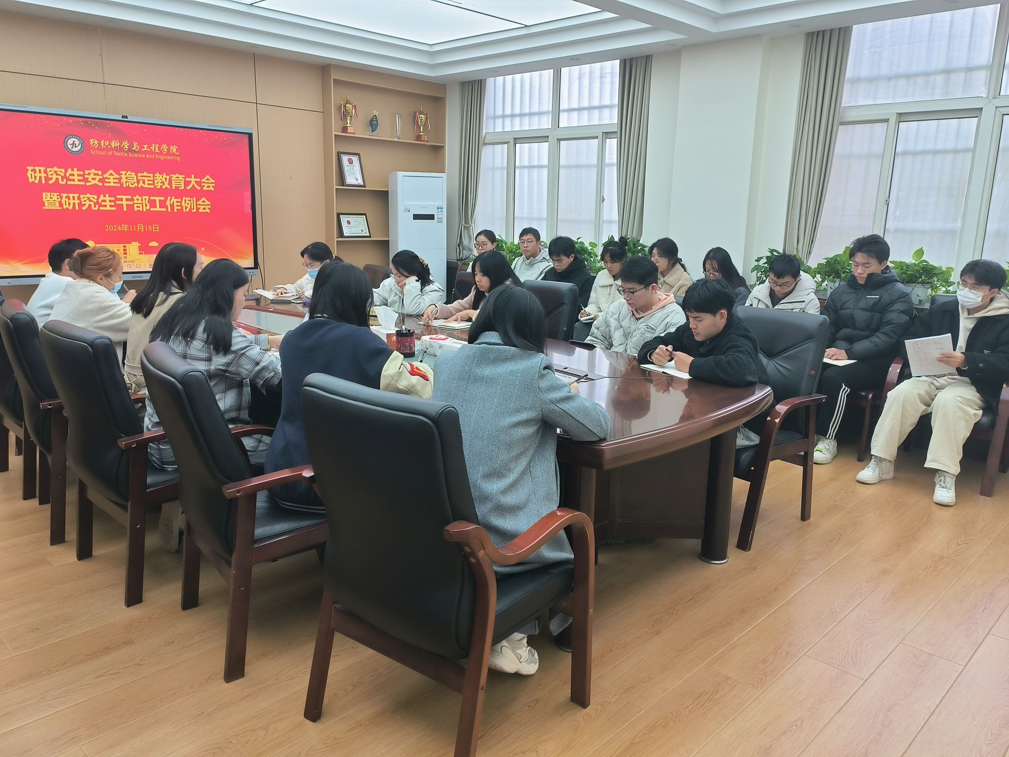 为贯彻落实公司安全稳定工作会议精神,进一步增强研究生安全防范意识,11月18日下午,2026年国际足联世界杯在金花校区纺织楼404会议室召开研究生安全稳定教育大会暨研究生干部工作例会,公司学工办主任、研究生辅导员姚婕,研究生辅导员苏娜和全体硕博研究生班长、团支书以及公司研究生会主席团成员参加了会议,会议由姚婕主持。