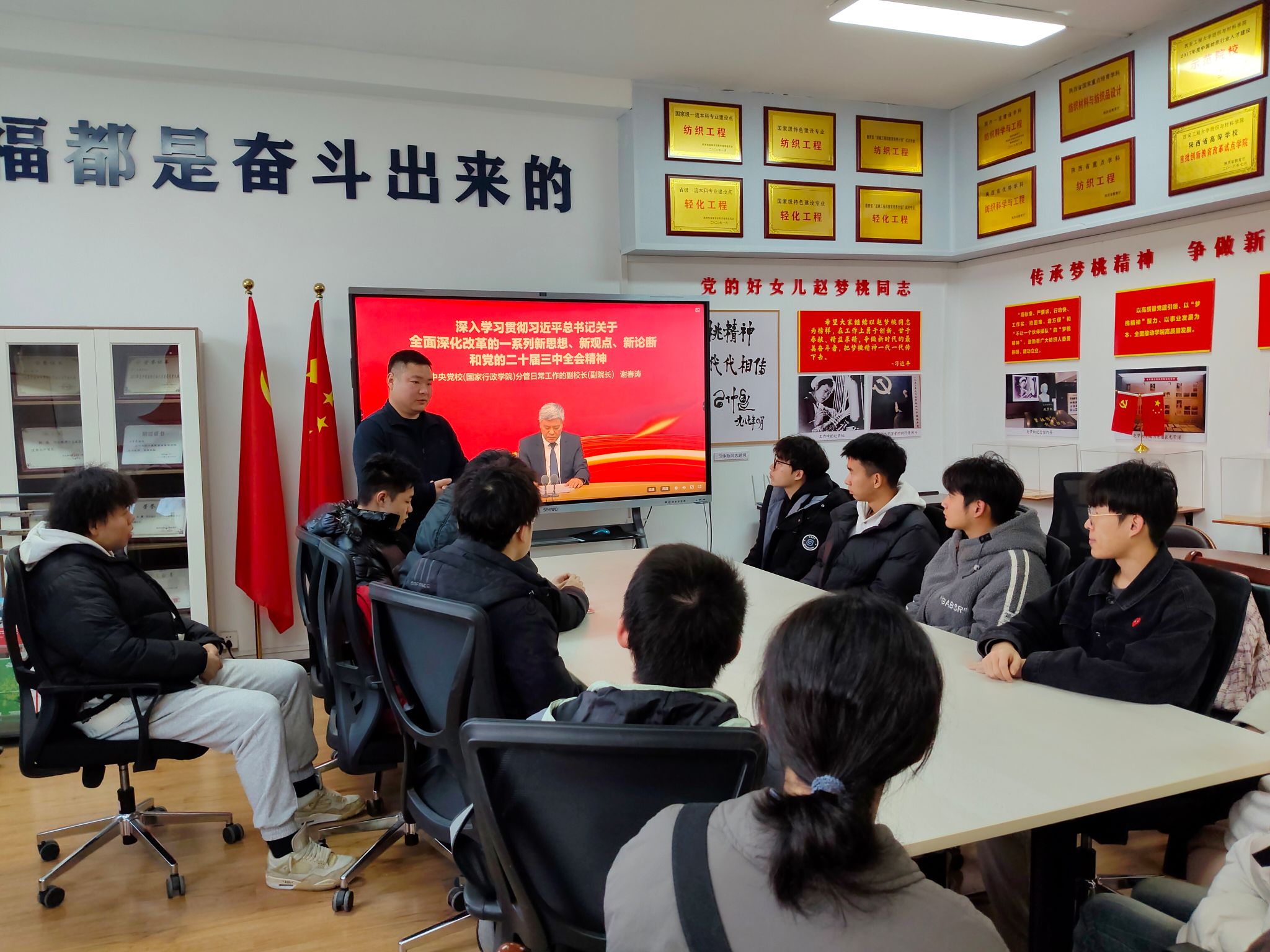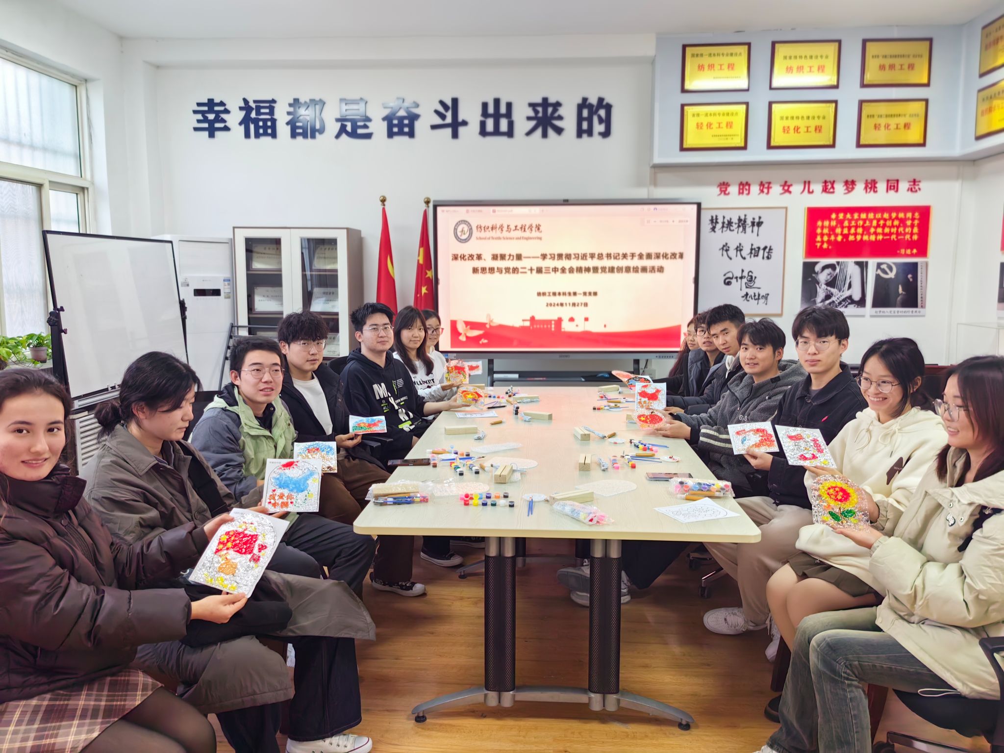 2024年11月27日,纺织工程本科生第一党支部在纺织楼406党团活动室成功举办了主题为“深化改革、凝聚力量——学习贯彻习近平总书记关于全面深化改革新思想与党的二十届三中全会精神暨党建创意绘画活动”。活动内容丰富,形式多样,充分展示了党支部成员的凝聚力与创新精神。