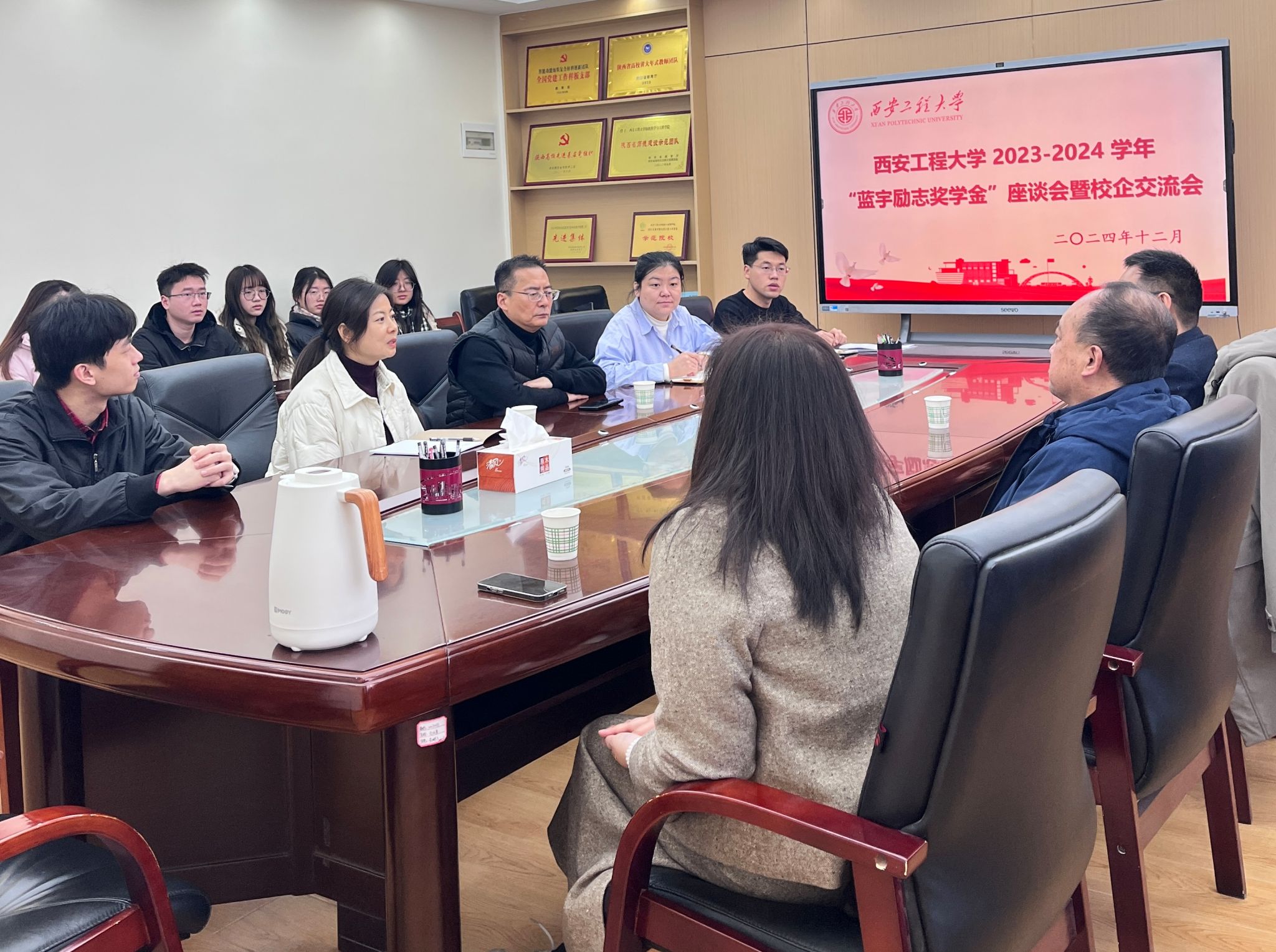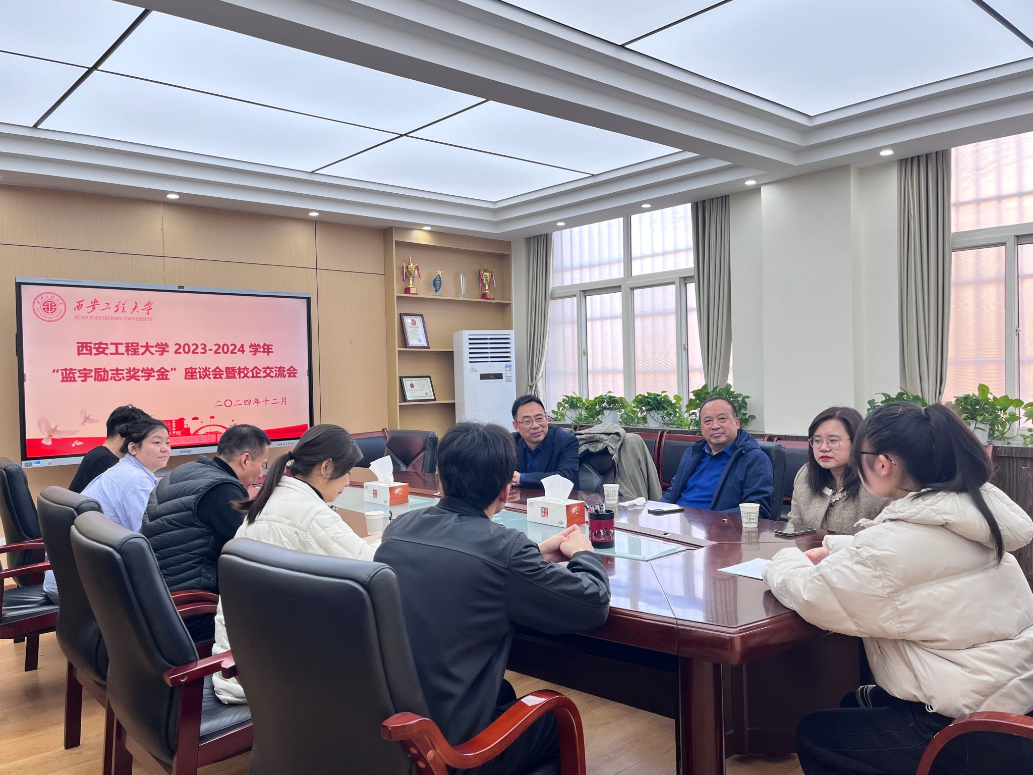 12月6日上午,在金花校区2026年国际足联世界杯404会议室开展了2023-2024 学年“蓝宇励志奖学金”座谈会暨校企交流会,浙江蓝宇纺织科技有限公司—蓝宇数码公司总经理白燕涛、销售总监孙义锋、人事经理朱俏萍一行来校交流,并参加了“蓝宇励志奖学金”获奖员工座谈会,就校企合作做了深入交流,公司党委书记李伟、辅导员苏娜、洪小洋,获奖学金员工代表参加了座谈会,会议由员工工作部副部长李路瑶主持。