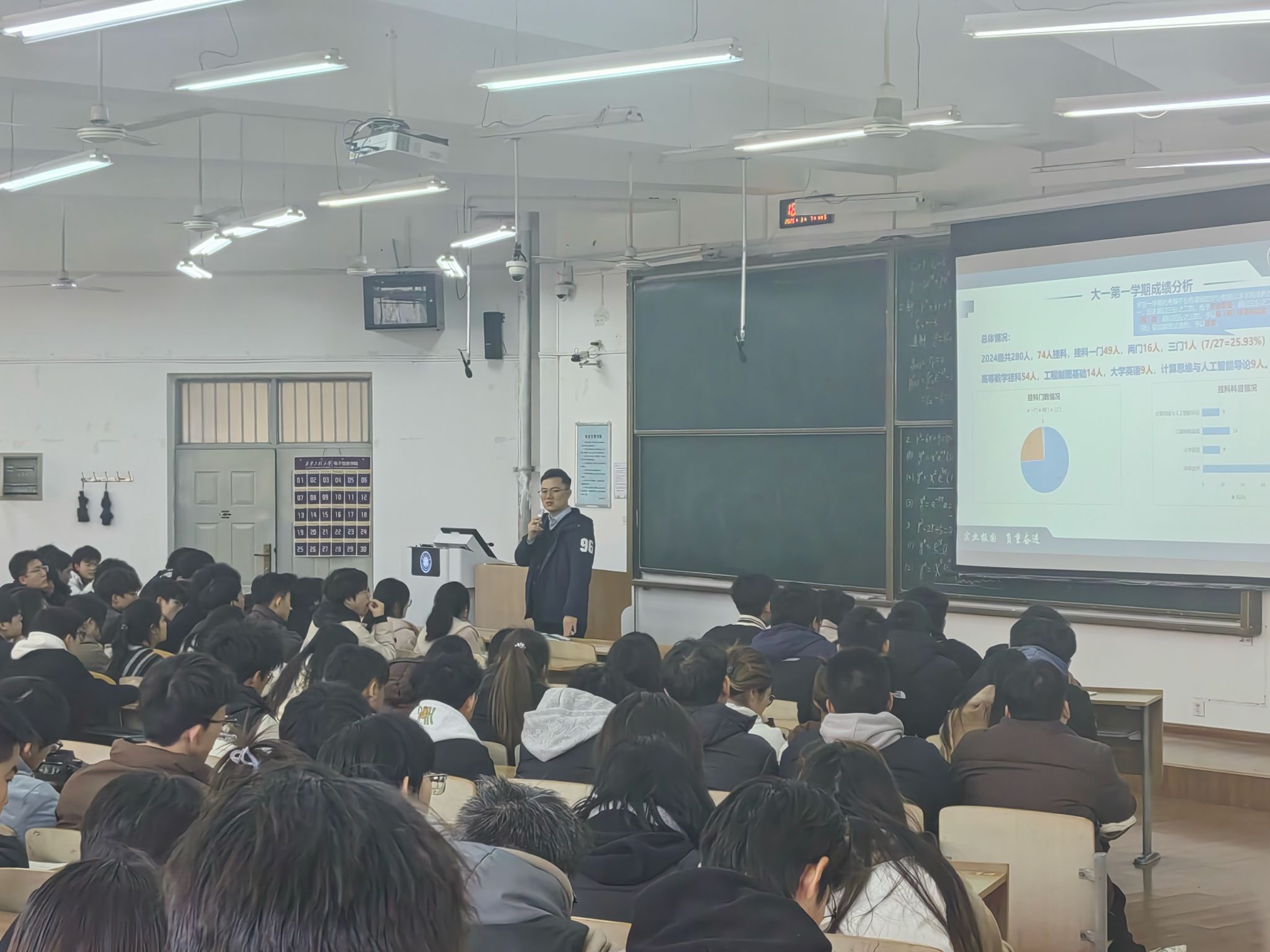 会议对2024级本科生第一学期成绩进行了全面分析。数据显示,新生整体学业表现良好,未出现学业警告的情况,但存在高等数学、工程制图基础等公共基础课挂科人数较多、平均分偏低的问题。在分析结束后,曹鑫对2024级员工提出要求,希望全体员工以姚穆院士“丹心报国、矢志育人”的精神为指引,将学风建设内化为自觉行动,不断提升自主学习能力。