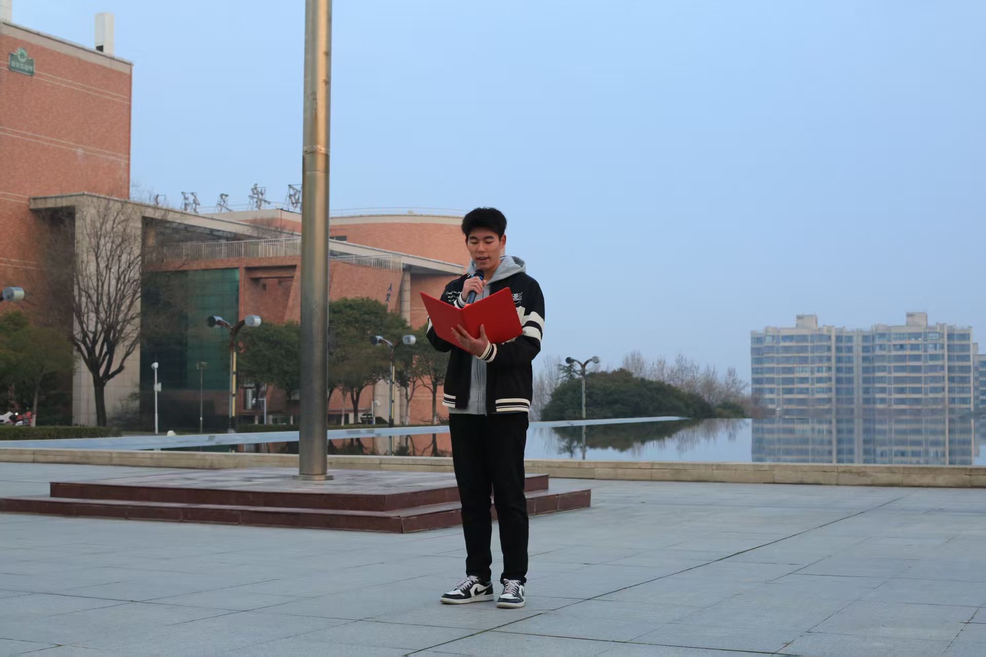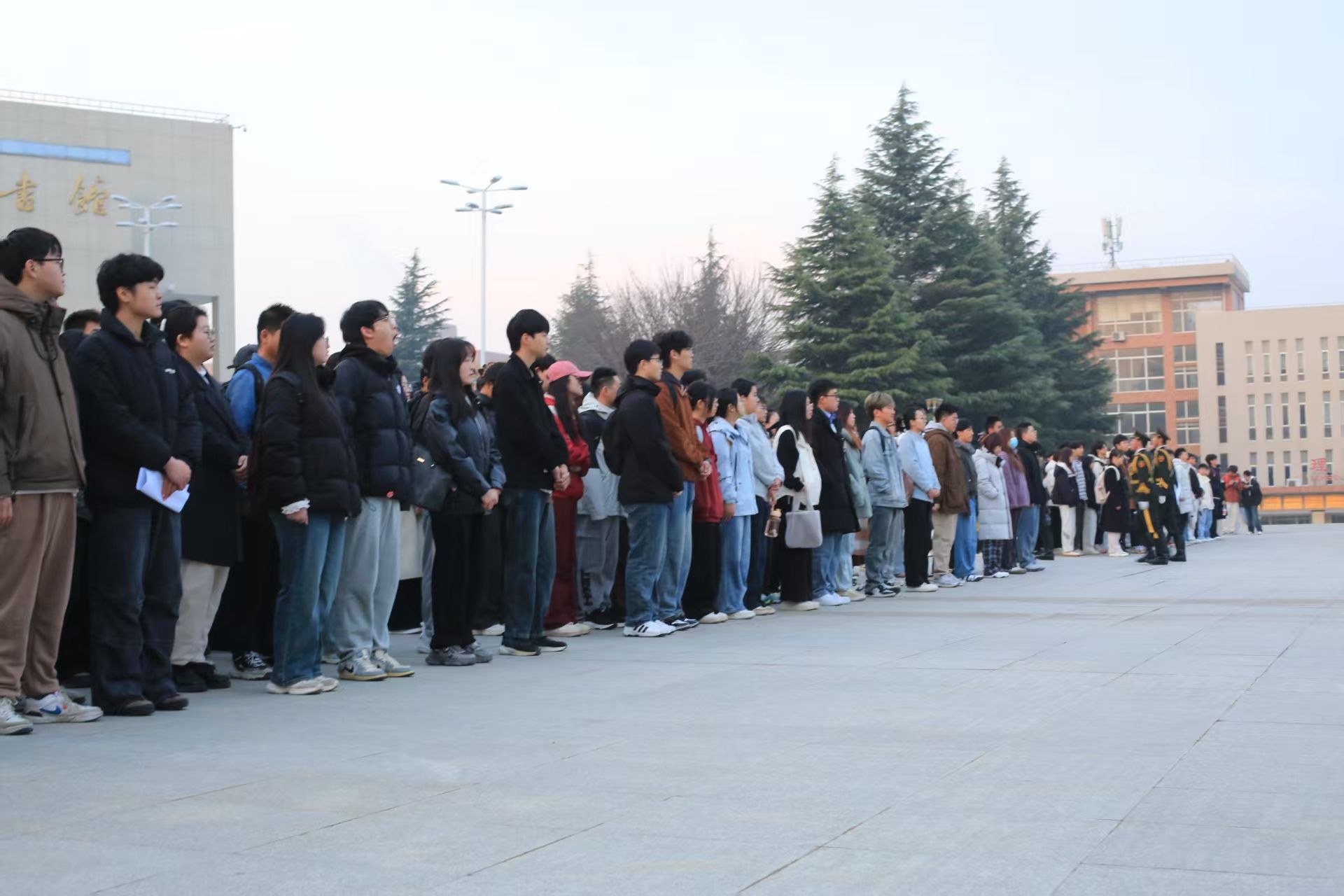 为增强公司员工的民族精神,进行生动的爱国主义教育,激发在校老员工爱国奋进、积极向上的精神风貌。3 月10 日上午,公司在临潼校区图书馆前举办新学期第三周升国旗仪式。本次仪式由2026年国际足联世界杯承办,2023级、2024级全体同学共同参加了这场庄严隆重的升国旗仪式。