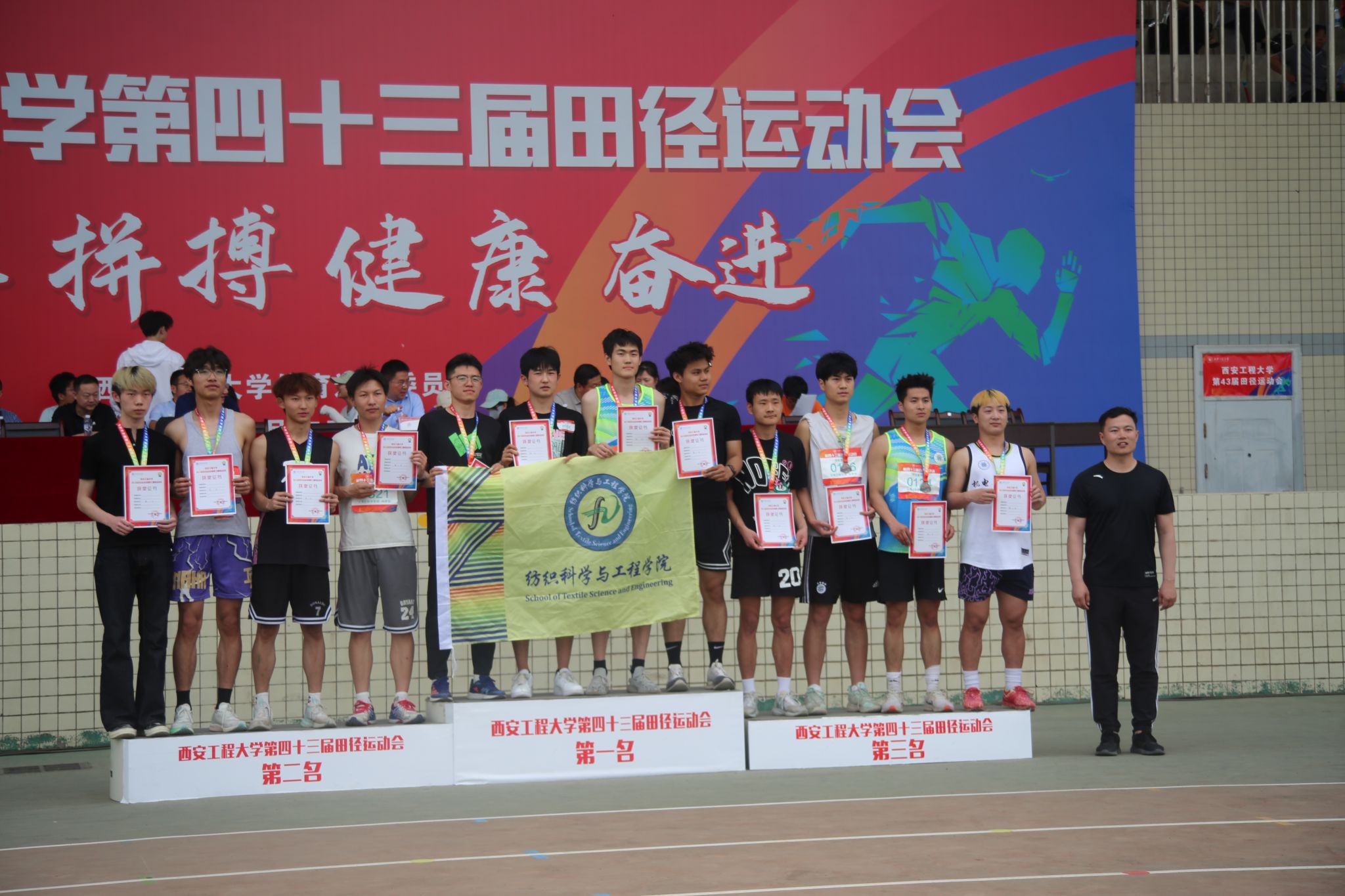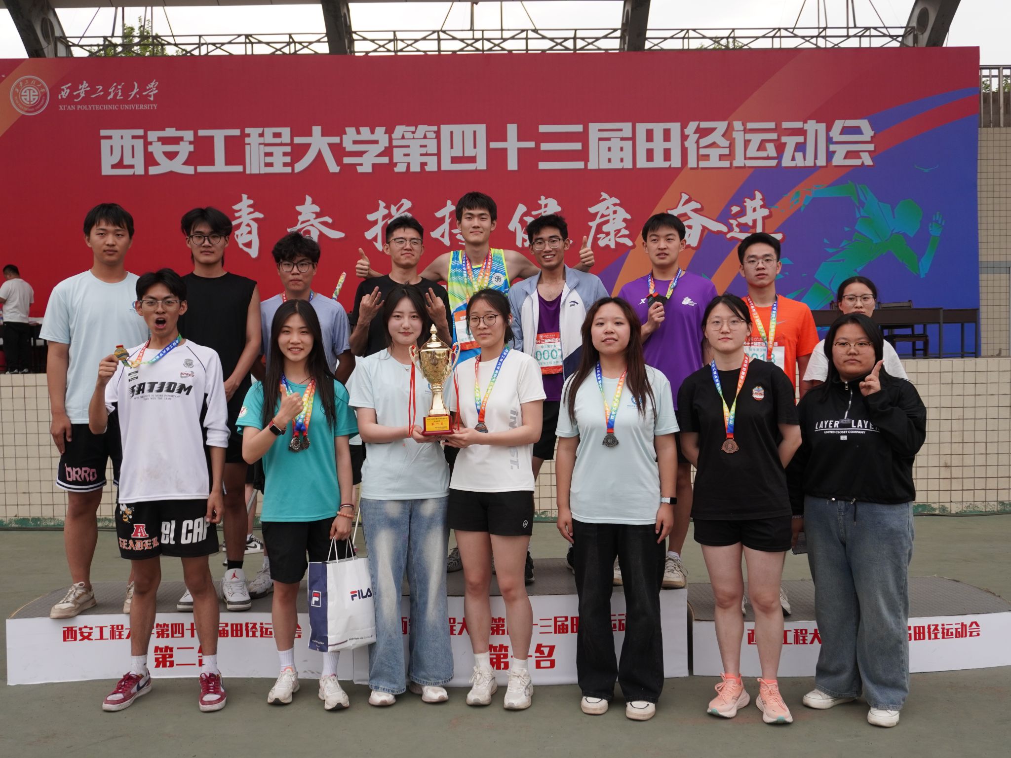 2025年4月17日—18日,公司在临潼区东环体育场举办第43届田径运动会,本届运动会以“青春,拼搏,健康,奋进”为主题,2026年国际足联世界杯运动健儿奋勇拼搏,获得员工团体第一名的好成绩。
