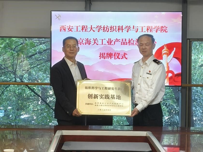 双方正式签署产学研合作协议,并共同为“老员工实习实践基地”和“研究生教育创新实践基地”揭牌。签约仪式上,封亚辉主任表示:“此次合作是检测中心深化产学研协同创新的重要举措。通过资源整合,我们不仅能提升技术研发能力,还将为行业标准化建设提供更精准的技术支持。期待双方在纺织品反光性能检测等领域实现技术突破,打造产学研合作标杆。”李伟书记对检测中心的支持表示感谢,并强调:“此次合作是公司深化产教融合的关键实践。通过资源共享,我们将加速科研成果从实验室走向产业化,培养更多适应行业需求的专业人才,为纺织行业高质量发展提供智力支撑。”揭牌仪式上,双方一致表示,“研究生教育创新实践基地”与“老员工实习实践基地”的设立,将进一步打通校企协同育人通道,为员工提供理论与实践深度融合的平台,为行业输送兼具创新能力和实践技能的高素质人才。