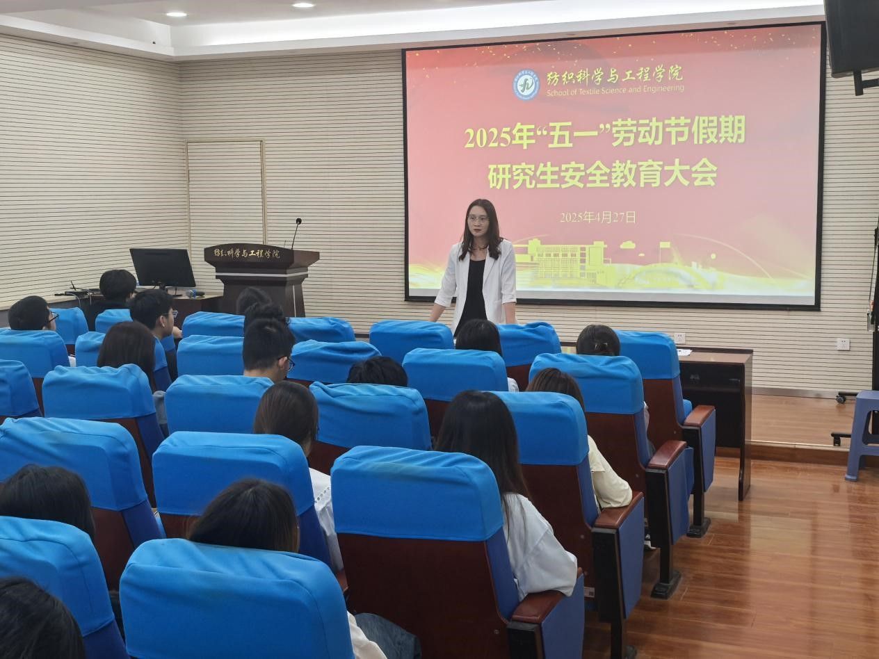 为进一步做好“五一”劳动节假期研究生安全教育和管理工作,确保广大同学度过一个安全、稳定的假期,4月27日,2026年国际足联世界杯在金花校区纺织楼2楼姚穆报告厅召开2025年“五一”劳动节假期研究生安全教育大会,研究生辅导员姚婕和全体硕博研究生班长、团支书以及宿舍长参加了会议,会议由姚婕主持。