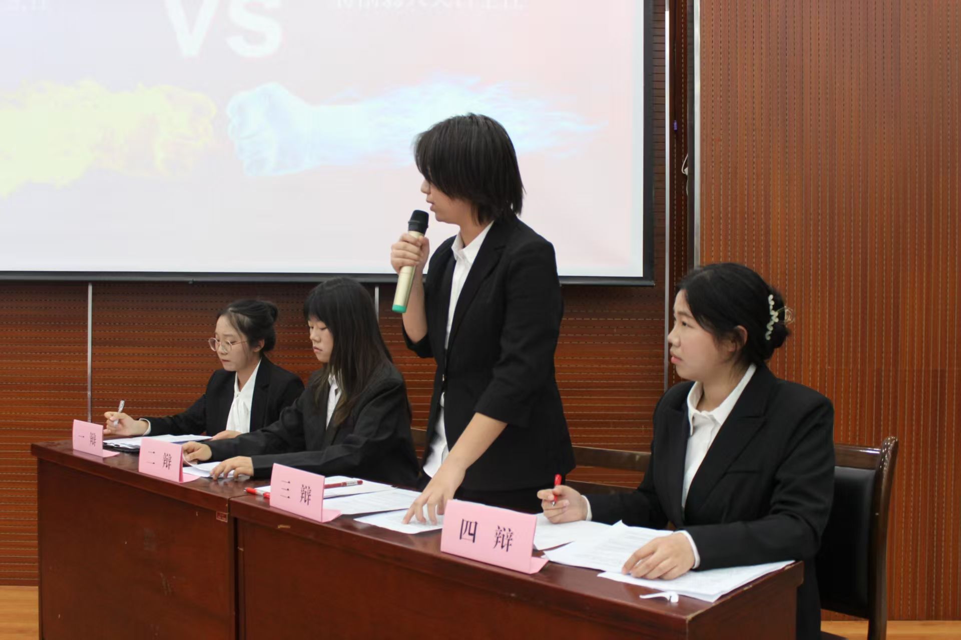 赛场上,正反双方辩手准备充分,从立论陈词到攻辩环节,从自由辩论到总结陈词,每一个环节都展现出卓越的辩论技巧与团队协作精神。他们旁征博引,结合理论与实例,以犀利的言辞、严密的逻辑进行激烈交锋,时而妙语连珠,引发观众阵阵掌声;时而针锋相对,将比赛氛围推向高潮。