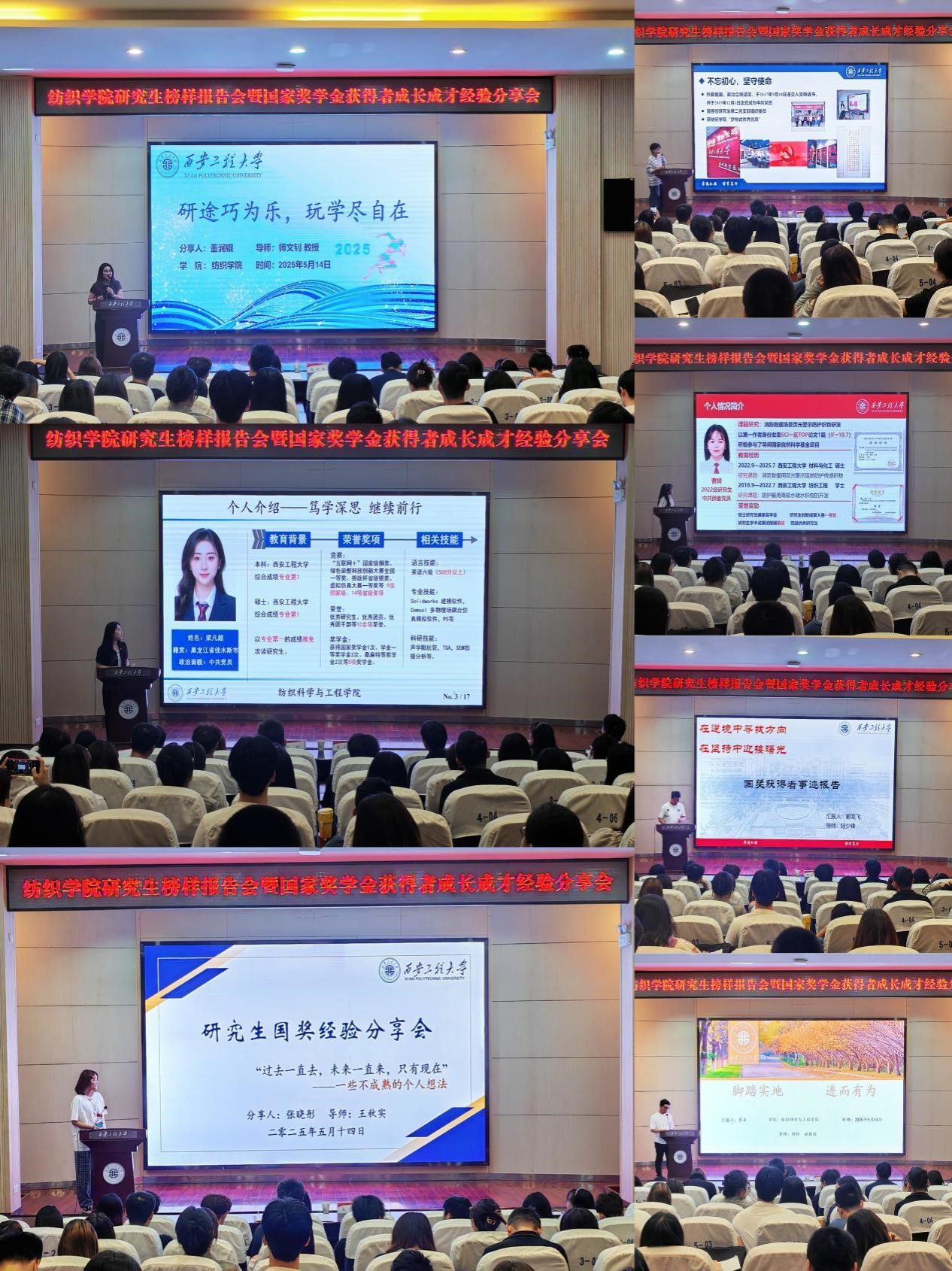 随后,公司2022级硕士研究生梁凡超、曹婍、张晓彤、郭龙飞、董涧锟、张悦雯和2023级硕士研究生贾奇七位研究生国家奖学金获得者依次上台分享自己的成长成才经验。他们结合自身的科研生活、学科竞赛、实践经历、就业升学、成长感悟等方面,分别以《青衿之志 履践致远》《破茧成研:从实验室到人生舞台》《过去一直去,未来一直来,只有现在》《在逆境中寻找方向 在坚持中迎接曙光》《研途巧为乐,玩学尽自在》《经纬共生:织就研途学术与生活的理想答卷》《脚踏实地 进而有为》为主题做了分享报告,并从学习方法、时间管理、心理健康等多个角度分享了自己的宝贵经验。他们通过鲜活的事例、多视角的讲述和真挚的情感,生动诠释了新时代研究生在专业深耕、学术创新与个人成长中的奋斗历程,现场不时响起热烈的掌声。