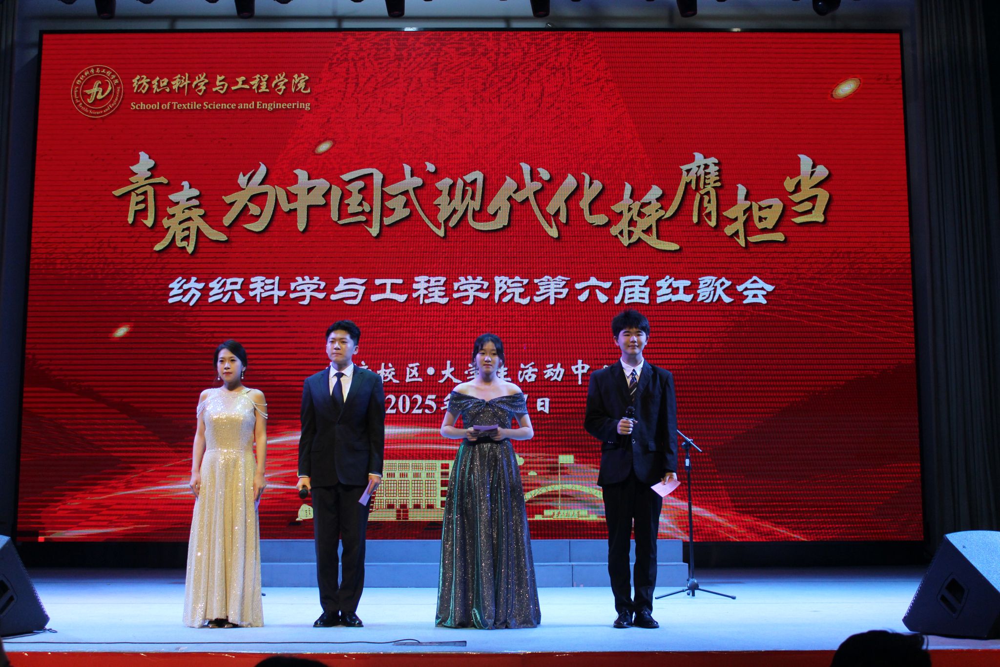 展演活动在庄严激昂的国歌声中拉开序幕。朱宇军在致辞中对同学们提出三点殷切期望:一要坚定理想信念,做有志气青年。将个人理想融入党和国家事业,以革命先辈为榜样,传承红色基因;二要勤奋学习,做有骨气青年。珍惜韶华,掌握扎实本领,勇于创新创造,为中国式现代化添砖加瓦;三要锤炼品德修为,做有底气青年。积极践行社会主义核心价值观,加强道德修养,投身社会实践与志愿服务。