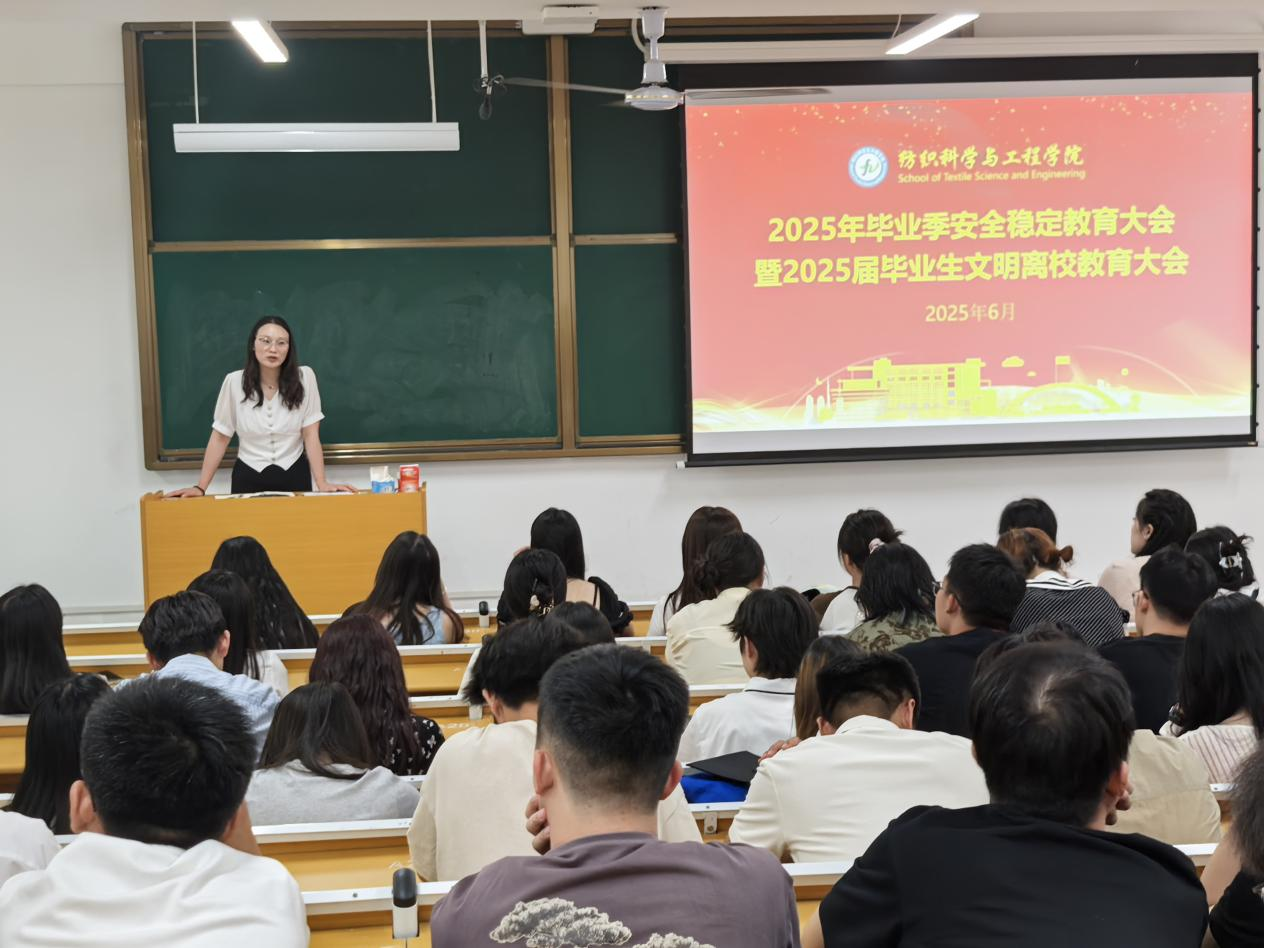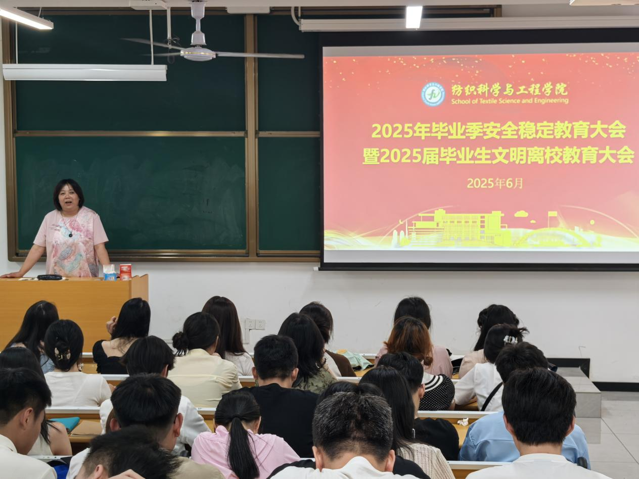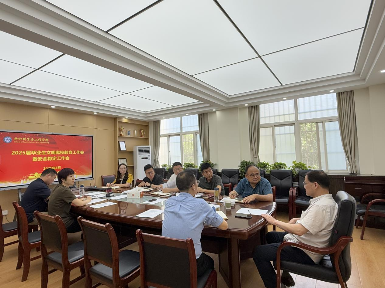 6月9日,公司在金花校区纺织楼404会议室召开2025届毕业生文明离校教育工作会暨安全稳定工作会,公司党政领导班子和毕业班辅导员参加了会议。会上,公司党委书记李伟传达了公司稳定安全工作会议精神,通报了近期公司员工安全工作情况,并就毕业季期间员工思想动态关注、毕业论文进度跟踪、重点员工关心帮扶、毕业生日常管理与文明离校教育、宿舍实验室工作室安全检查等重点工作作出部署。公司副董事长兼公司经理张洛红带领与会人员学习了公司《关于进一步加强2025年毕业季校园稳定安全工作的通知》文件精神,并就做好2025届毕业生工作提出明确要求:以政治担当压实安全责任,以一线思维排查化解隐患,以优质服务筑牢稳定根基。