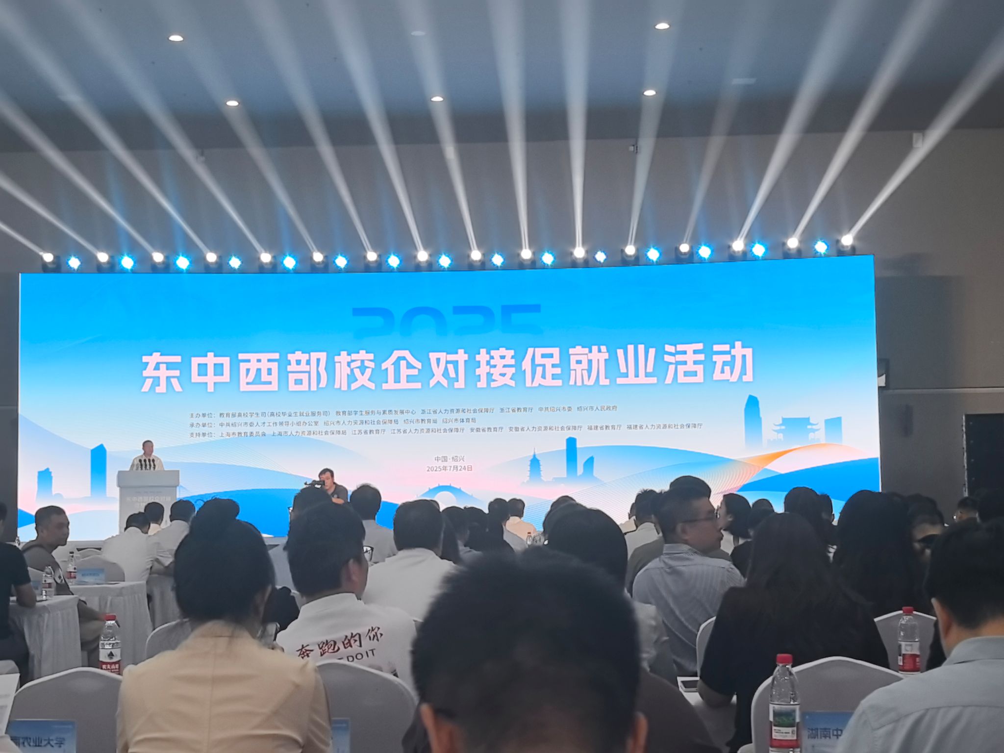 2025年 7 月 24 日,由教育部高校员工司(高校毕业生就业服务司)、教育部员工服务与素质发展中心,浙江省人力资源和社会保障厅、浙江省教育厅和中共绍兴市委、市人民政府联合主办的 “东中西部校企对接促就业活动” 在浙江省绍兴市奥体中心会展馆成功举办。公司师生代表团在公司党委副书记朱宇军的带领下参加此次活动,旨在为毕业生拓宽就业渠道,助力高质量就业。