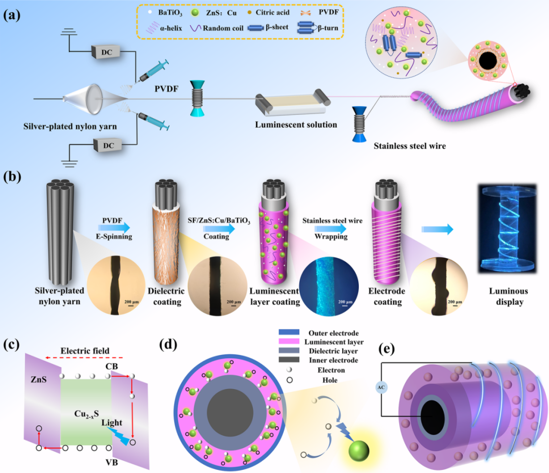 具有同轴结构柔性丝素蛋白基电致发光纤维及发光机制