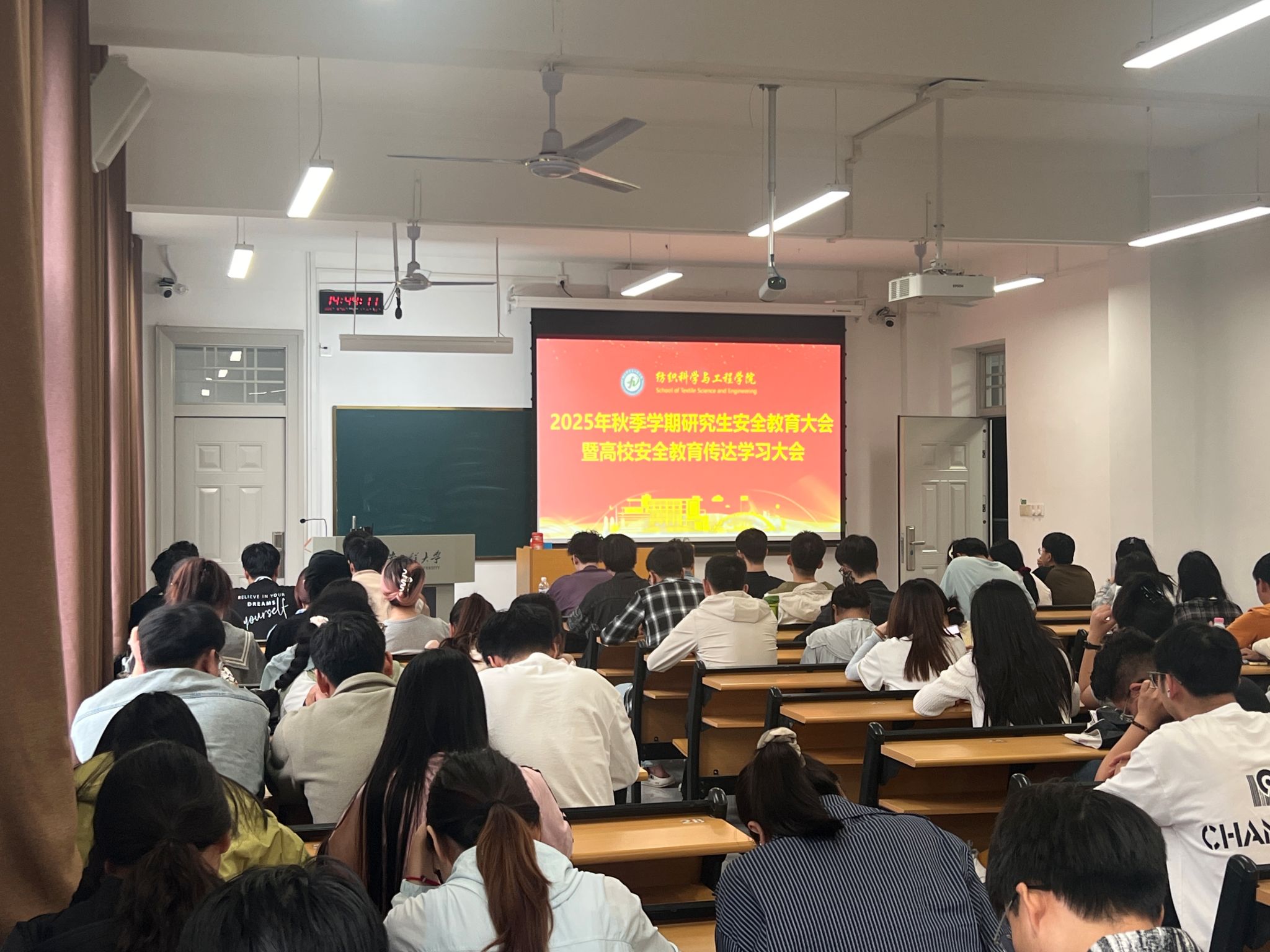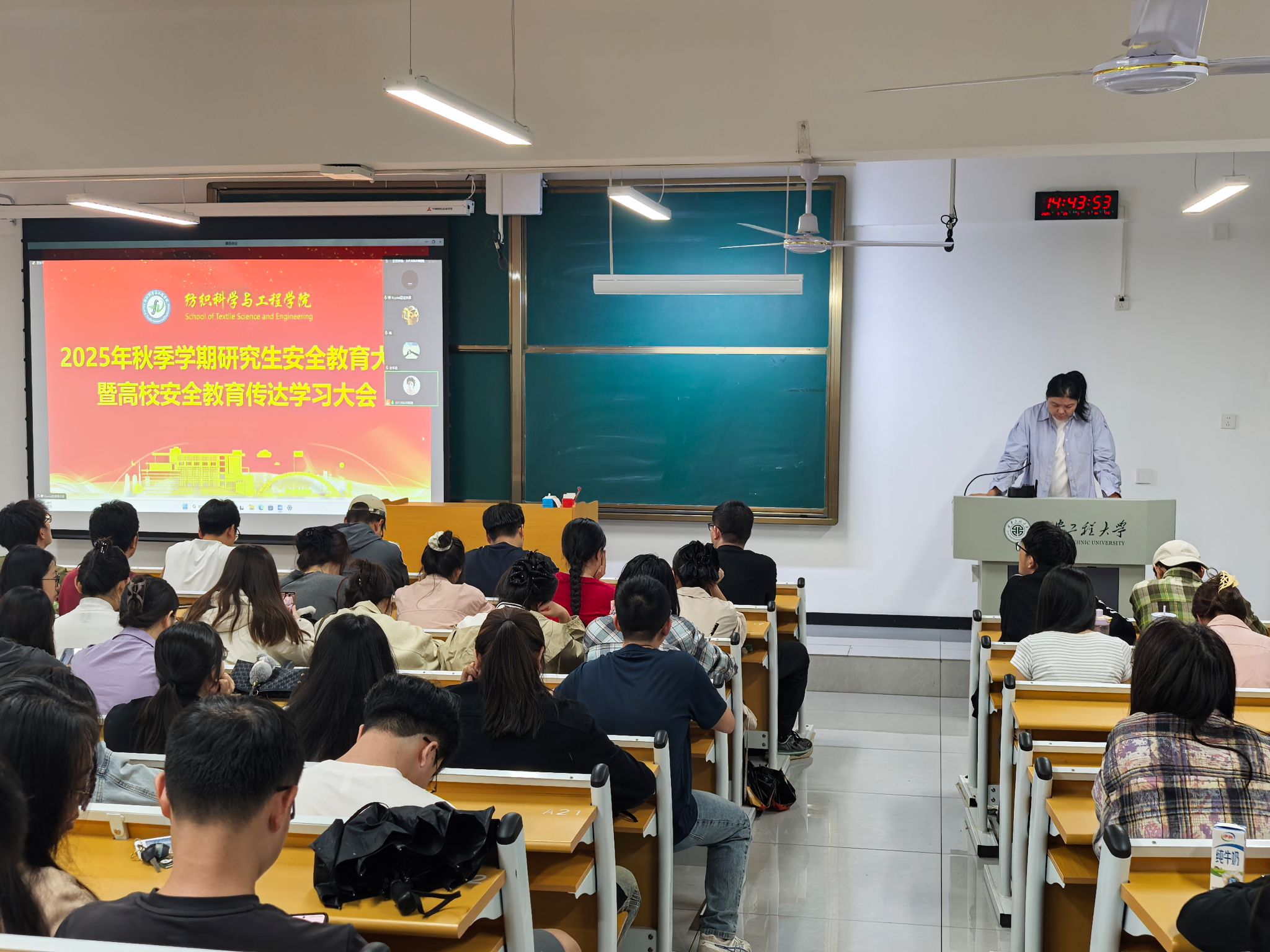 会上,姚婕首先传达了高校安全教育要点(2025年),强调要提升三个安全认知水平,培养五种必备安全意识。接着,她结合研究生安全案例,着重对研究生在校学习生活安全防范作二十个方面的安全宣讲。提醒全体研究生在公寓、自习室、餐厅、工作室、实验室等校内公共场所要保护好财务和人身安全;远离高危区域,建立良好人际关系,保持人身安全、心理健康和交往安全;注意防火安全、实验和实习实训、校内外交通出行安全;注意就业安全、网络安全和防范电信诈骗。她强调,全体研究生要提高政治站位,树牢“安全第一、预防为主”的思想意识,将安全理念融入学习生活各环节。