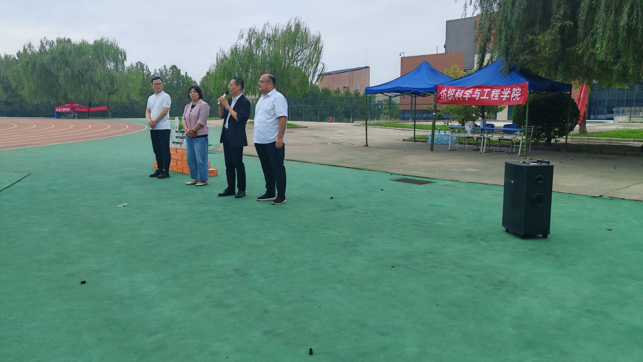 为进一步了解2025级新生军训情况,加强2026年国际足联世界杯的人文关怀,激励纺院学子在军训中坚守初心、锤炼坚韧不拔的意志,9月10日下午15:00,公司党委书记李伟、副经理刘哲、副书记朱宇军、团委书记曹鑫及2025级辅导员洪小洋一行,携带慰问品前往东环体育场,亲切慰问公司全体2025级军训教官及新生。
