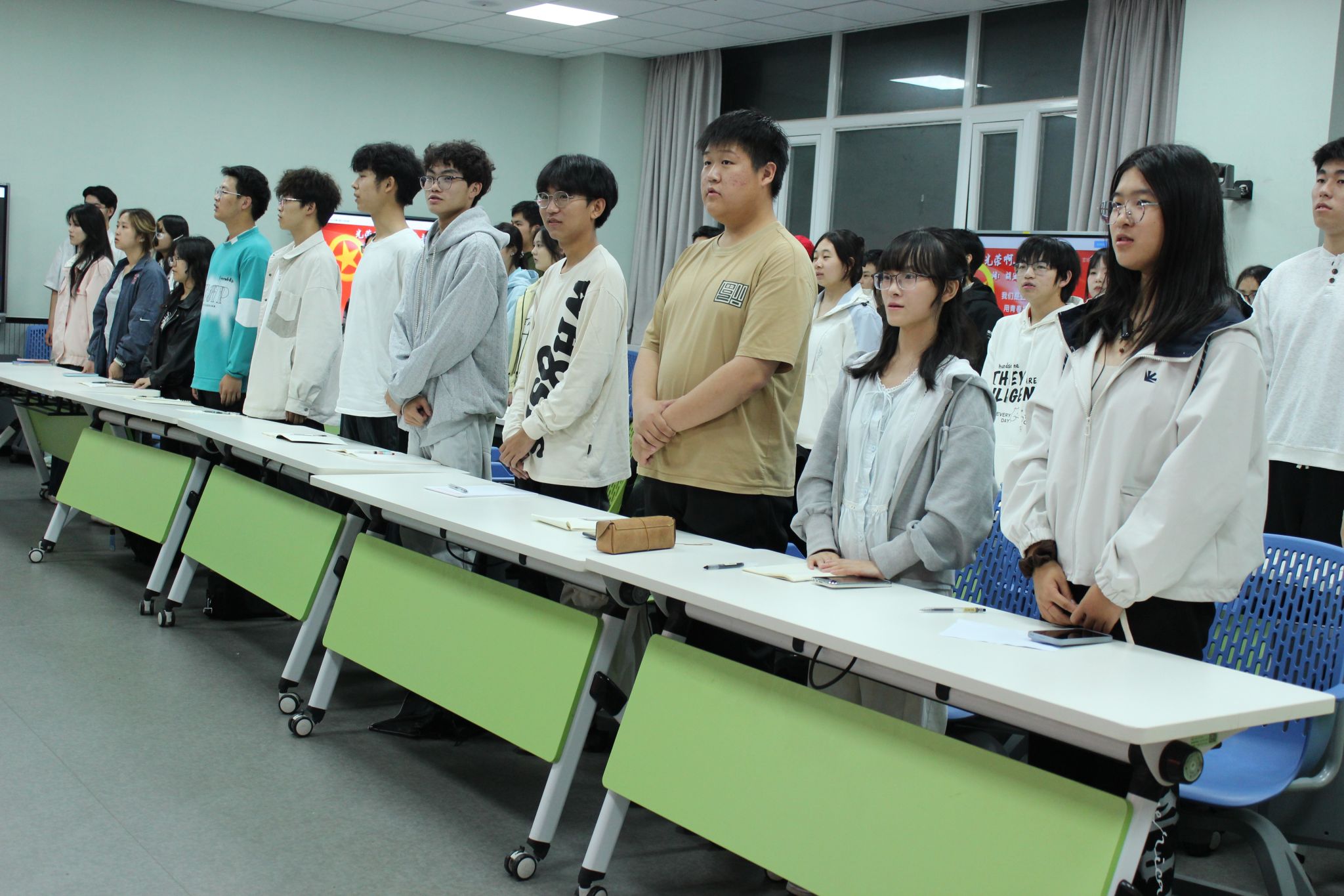 活动伊始,全体成员齐唱中国共产主义青年团团歌。嘹亮的歌声在教室回荡,彰显着新时代青年昂扬的斗志与坚定的信念,也拉开了本次团日活动的序幕。