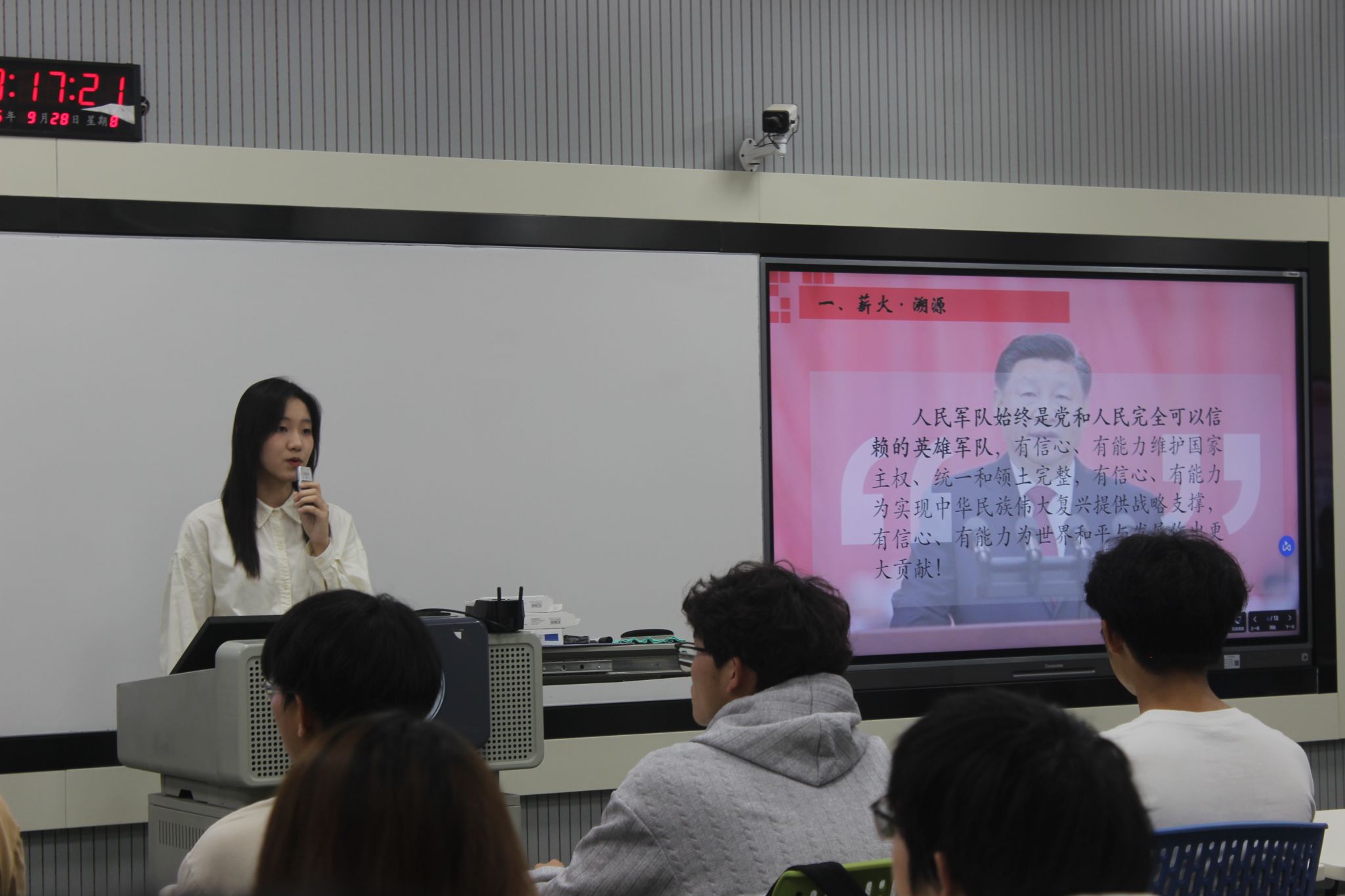 活动最后,主持人对本次团日活动进行总结,号召全体班长、团支书以此次活动为起点,将所学所悟转化为实际行动,在岗位上勇于创新、甘于奉献,以青春之我诠释“请党放心,强国有我”的铮铮誓言。