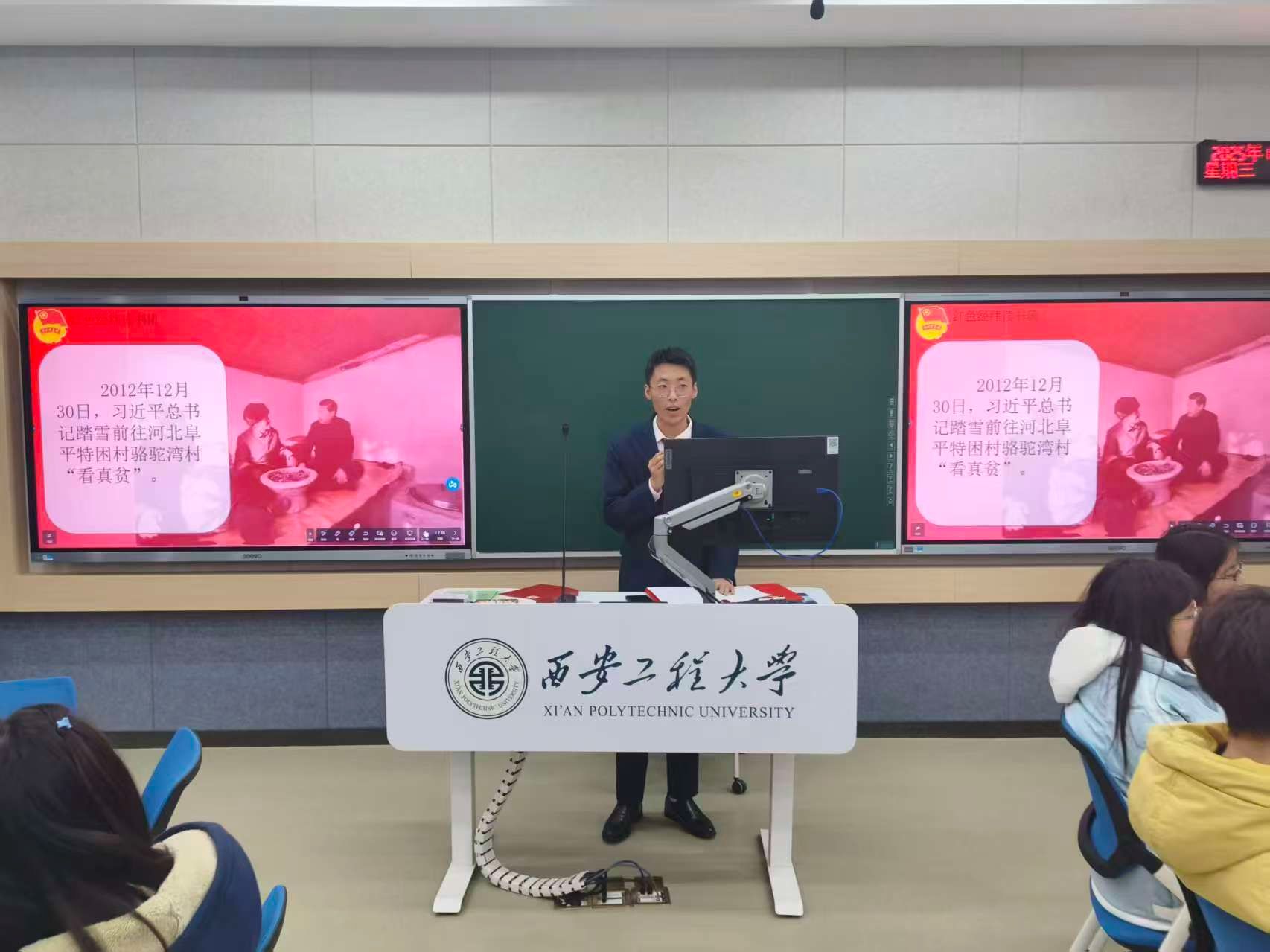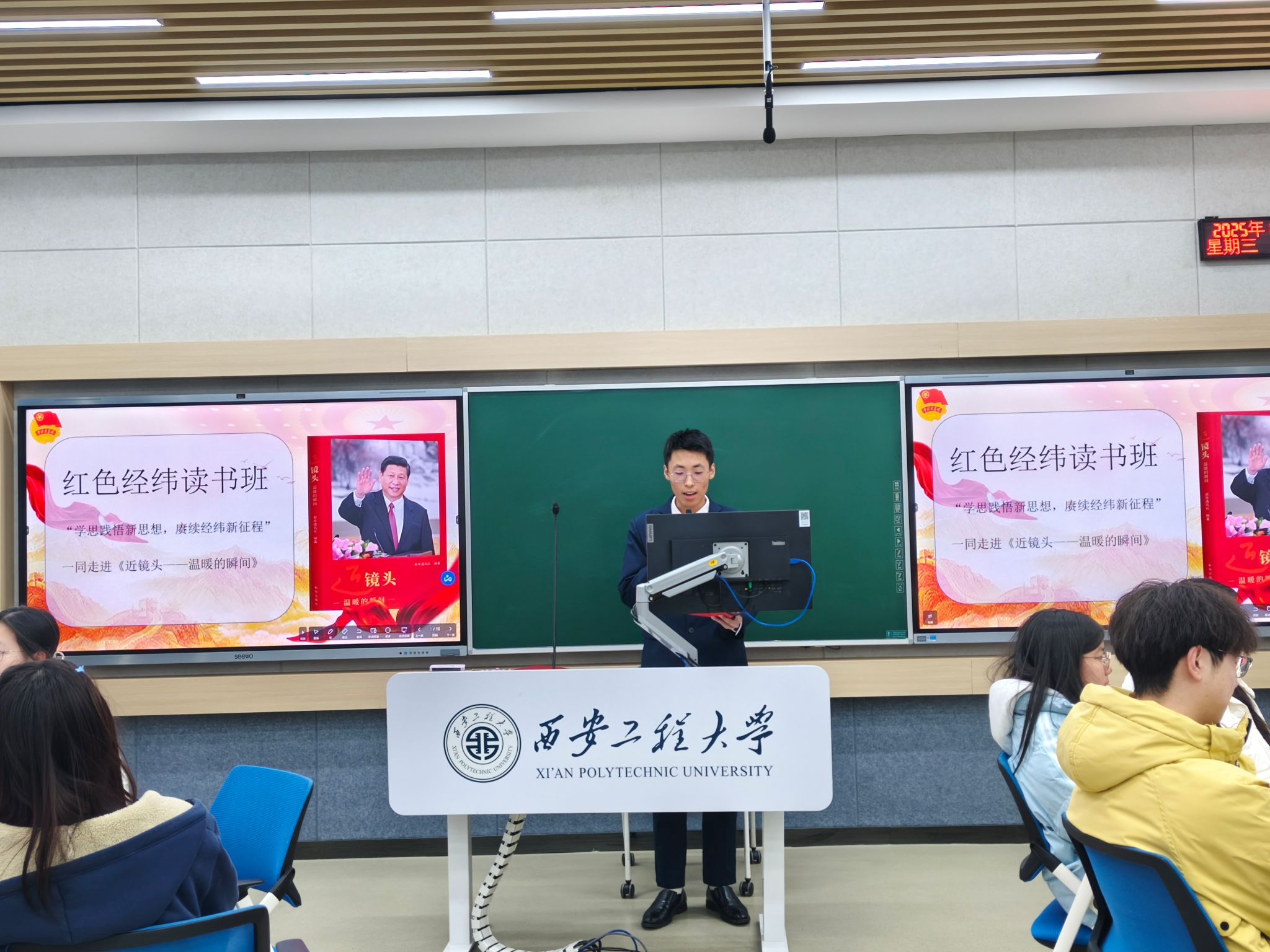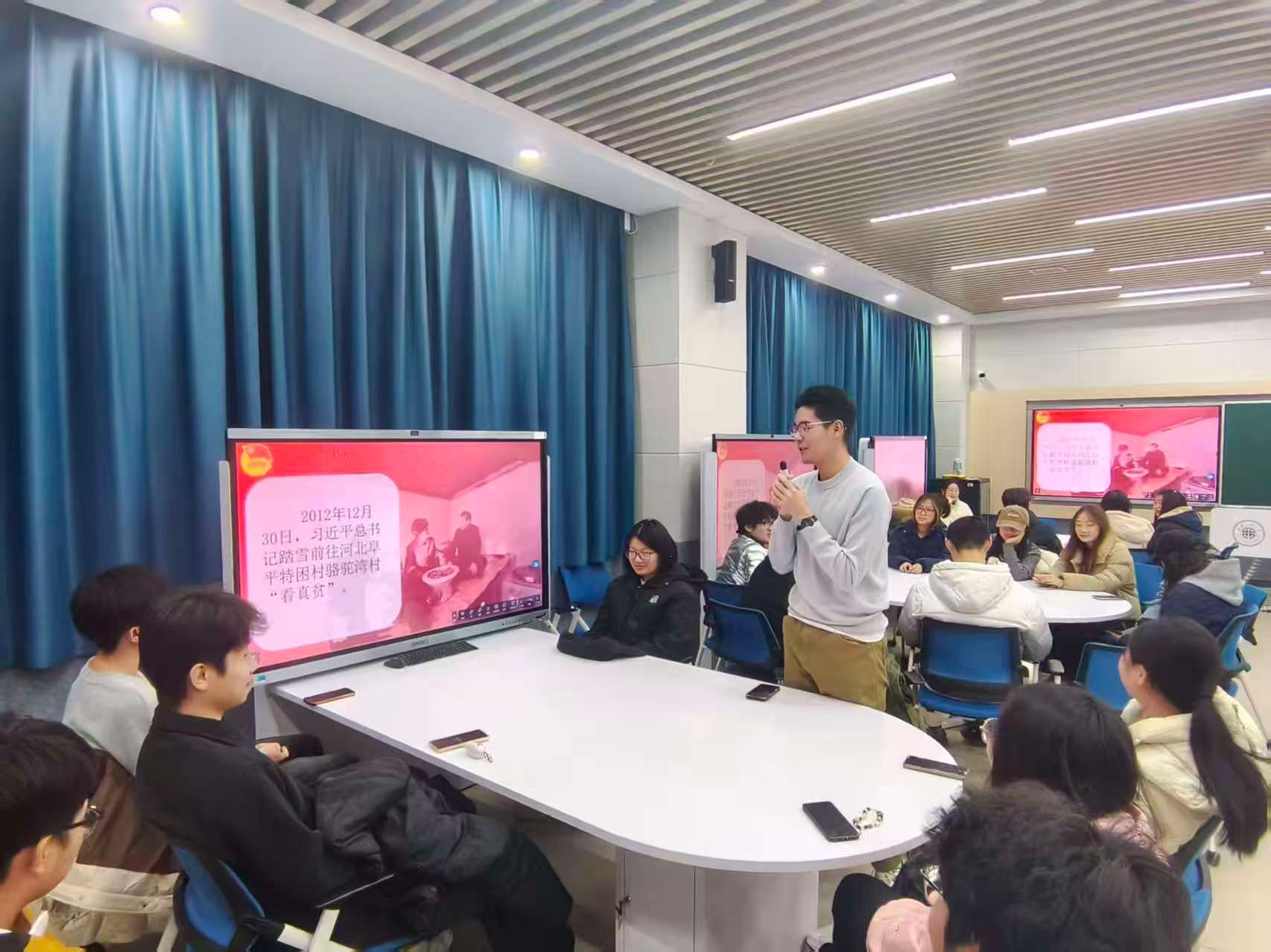 视频学习环节,首段视频中习近平总书记“人民对美好生活的向往就是党的奋斗目标”的论述引发强烈共鸣。现场同学积极发表了自己的观点。后三段视频则以更鲜活的语言强调新时代青年学习新思想的重要性。