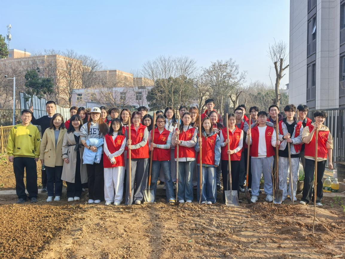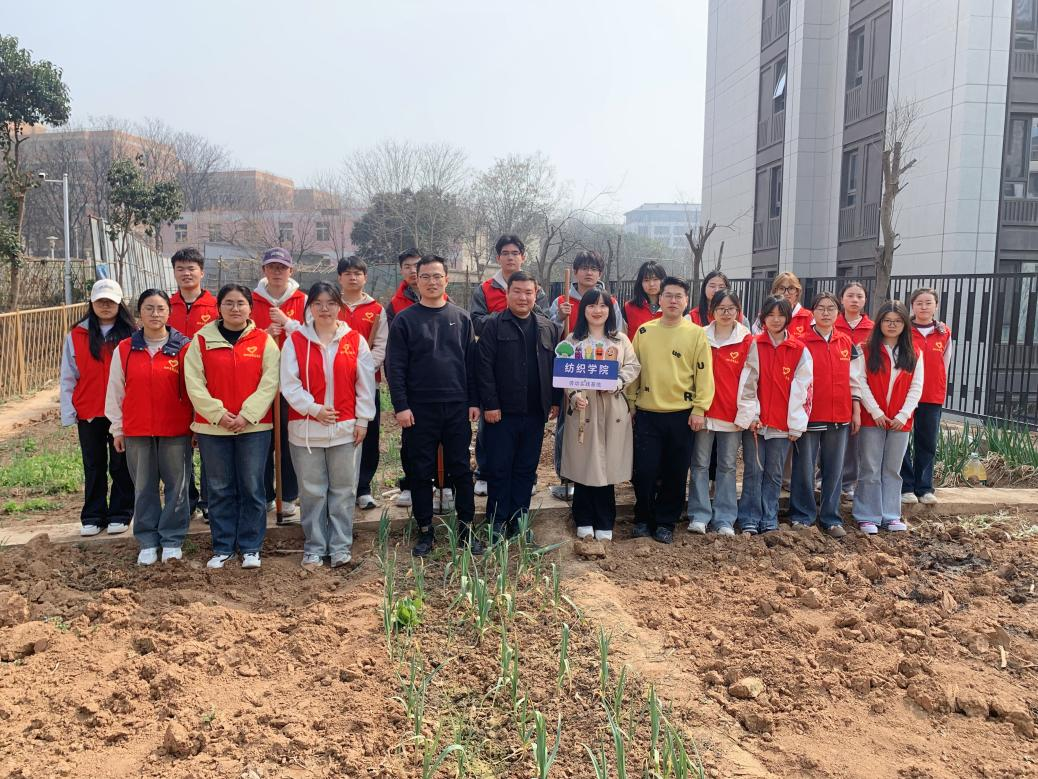 劳作过程中,大家俯身弯腰、细致入微,仔细拔除田间杂草,认真辨析作物幼苗与杂株,在实操中夯实农耕辨识基础知识;随后合力翻耕土地、平整墒面,让原本杂乱的田地变得规整有序。最具意义的是,师生携手栽种桃树苗,挖坑、扶苗、填土、浇水,每一个步骤都一丝不苟,以亲手栽植的桃树寄托“桃李满天下、育人绽芳华”的美好愿景,让劳动实践兼具教育意义与人文情怀。田间地头处处是忙碌的身影,师生互帮互助、干劲十足,充分展现出纺织学子吃苦耐劳、团结协作、务实奋进的优良风貌。经过辛勤付出,耕读小园环境焕然一新,土地平整规整,桃树苗迎风挺立,为校园增添了一抹生机与绿意。