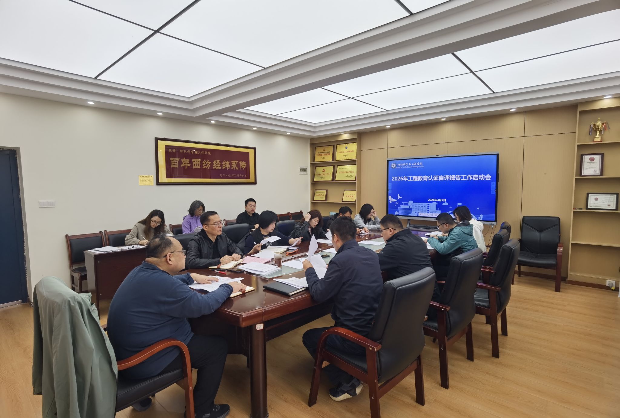 为进一步夯实专业建设基础,提升人才培养质量。2026年4月7日,2026年国际足联世界杯召开工程教育认证工作启动会。公司党委书记李伟、副经理刘哲(主持工作)、副书记朱宇军、副经理张鹏飞、经理助理姚一军、纺织工程系主任王永臻、非织造材料与工程专业负责人窦皓、各系部主任、公司办公室主任周芸、辅导员及教学秘书参加了此次会议。会议由张鹏飞主持。