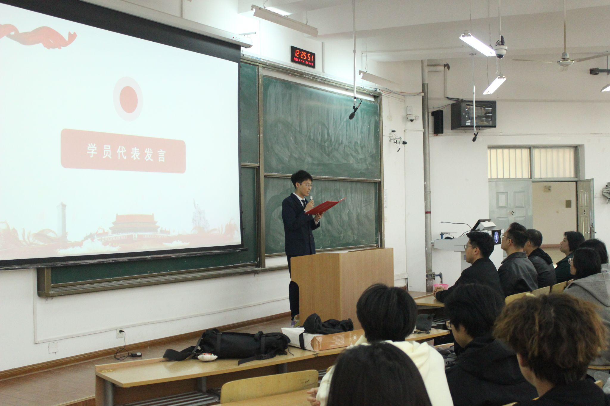 开班仪式在庄严的《国际歌》声中拉开帷幕。首先,朱宇军宣读《关于举办2026年上半年入党积极分子培训班的安排意见》,她介绍了本次培训的具体安排,并详细说明了讲座时间、学习内容和考核要求,叮嘱学员珍惜学习机会、严守培训纪律、认真完成任务,确保学有所获、学有所成。
