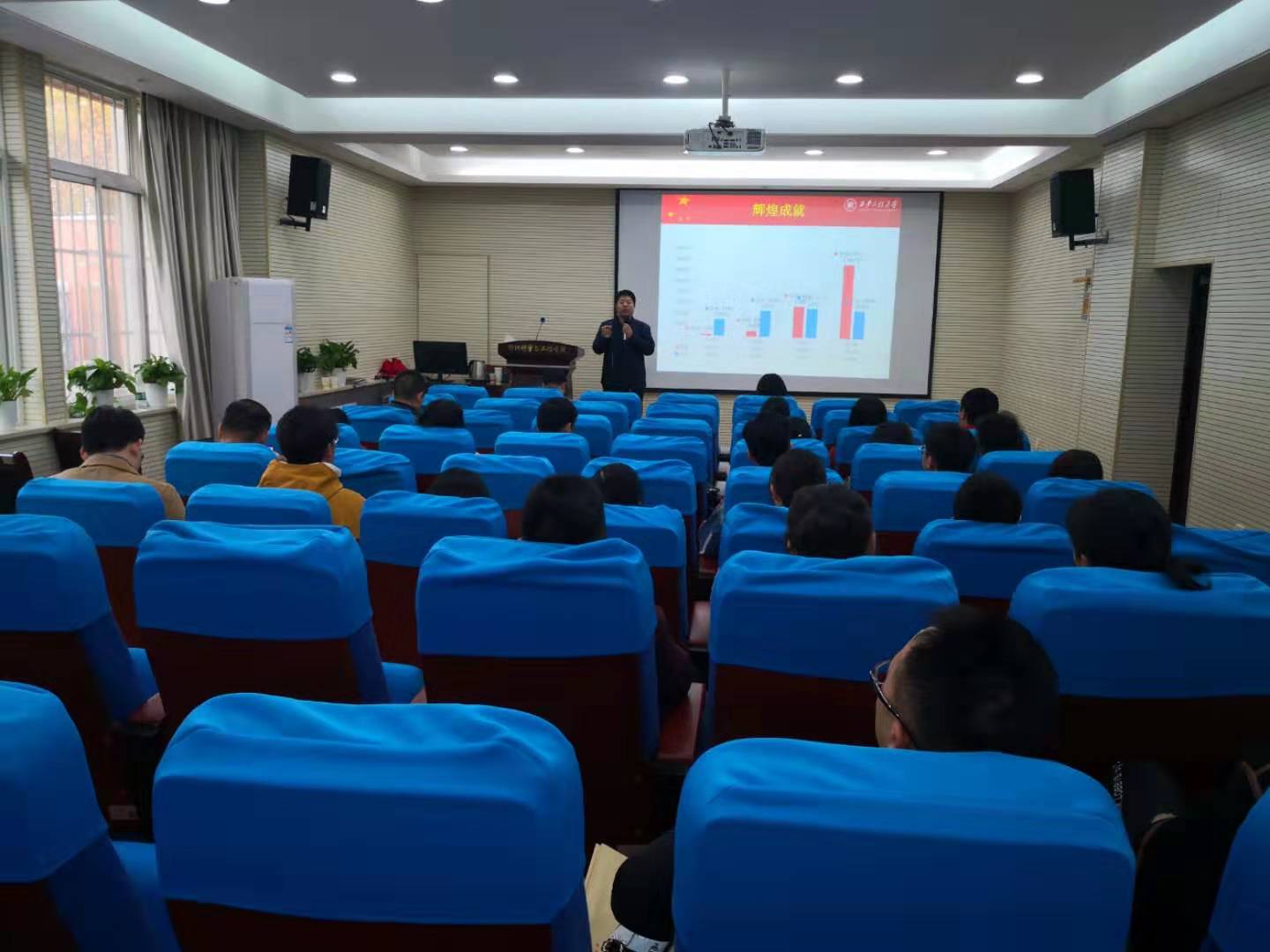 首先,郭松作题为“新时代新使命新担当新作为——学习习近平新时代中国特色社会主义思想”的报告。他从新时代——呼唤三个担当、新使命——践行四个伟大、新担当——彰显党员本色、新作为——凝聚发展合力四个部分深入浅出地阐述了习近平新时代中国特色社会主义思想的丰富内涵和精神实质。帮助大家进一步了解了国情,理解了“新时代、新使命、新担当和新作为”的蕴含和意义,深化了对习近平新时代中国特色社会主义思想的领悟。