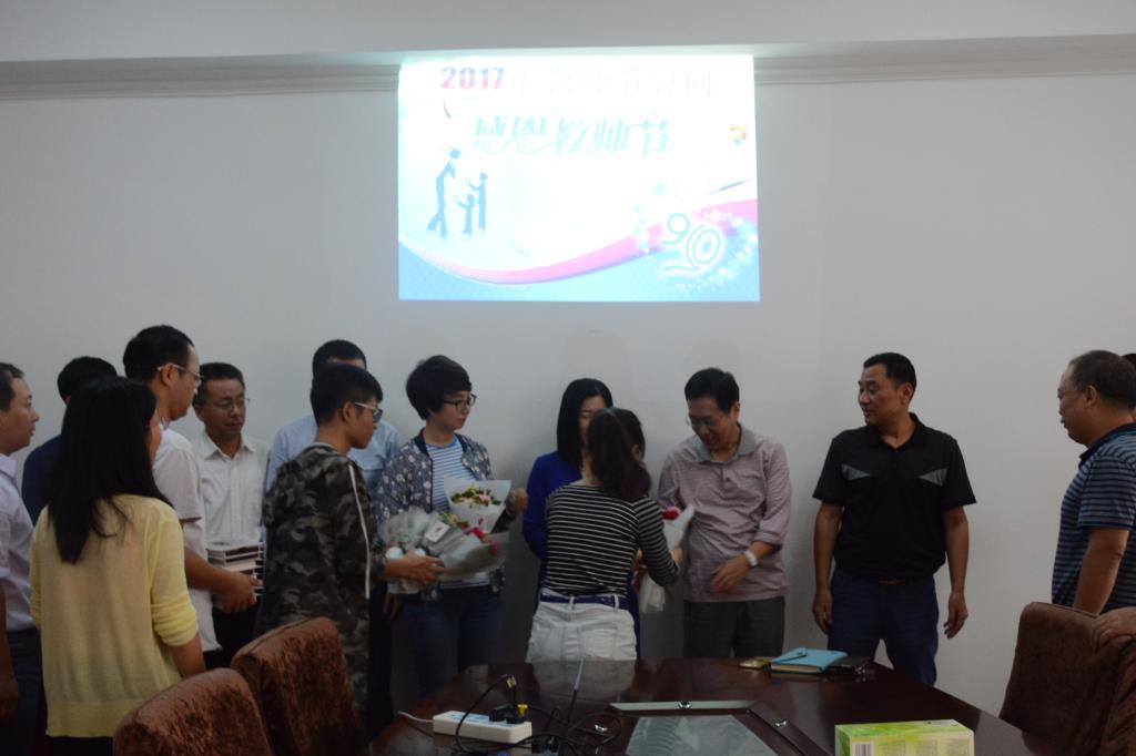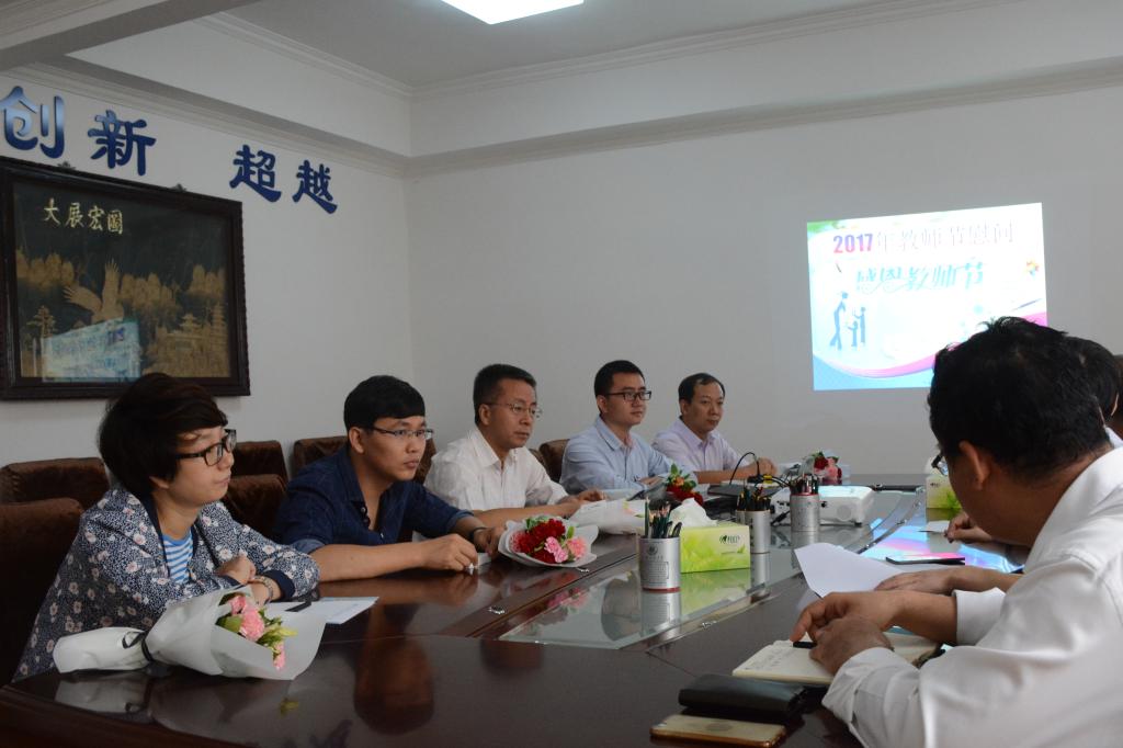 在教师节慰问座谈会中,公司邀请了被评为师德先进个人、优秀教师、先进工作者、员工心目中的好老师等8名老师。会议由阚书记主持,孙经理对各位老师获得的荣誉表示祝贺,希望大家继续发扬学术精神,发扬好的传统,在公司各方面建设中起模范带头作用。校团委员工会为8位老师赠送了鲜花贺卡和礼物。最后大家合影留念。本次教师节座谈会在一片温馨、轻松的氛围中圆满结束。
